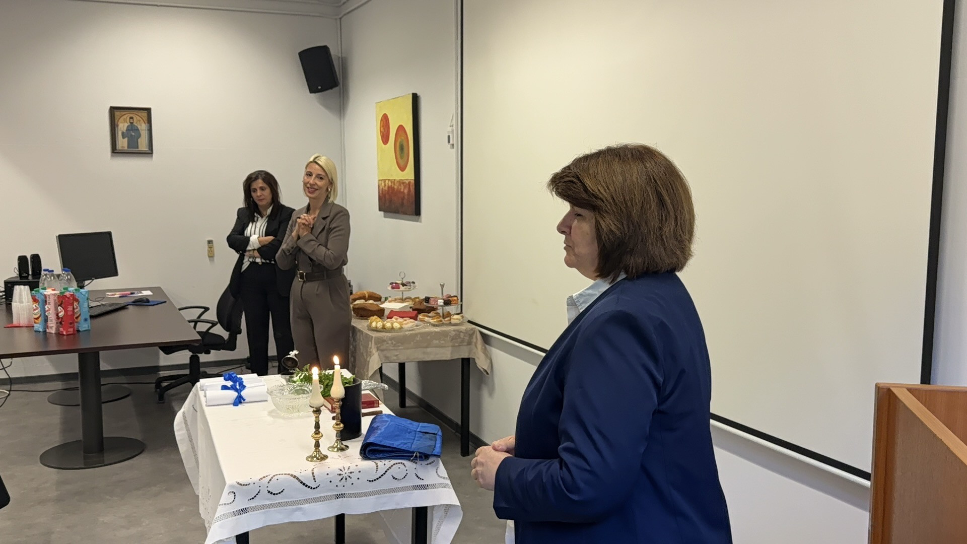 Με την ευλογία της εκκλησίας πραγματοποιήθηκε ο Αγιασμός για την έναρξη της νέας εκπαιδευτικής χρονιάς 2025-2026 στη Σχολή Ανώτερης Επαγγελματικής Κατάρτισης (Σ.Α.Ε.Κ.) του Παναρκαδικού Γενικού Νοσοκομείου Τρίπολης, παρουσία της Διοικήτριας του Νοσοκομείου κας Ευδοξίας Παπαγεωργίου, της Διευθύντριας της ΣΑΕΚ κας Γεωργίας Μαργιώλου, της Διευθύντριας της Νοσηλευτικής Υπηρεσίας κας Μαρίνας Λαμπράκη, και της Ιατρού Μικροβιολόγου κας Χριστίνας Καμινιώτη, οι οποίες μαζί με τους εκπαιδευτές της ΣΑΕΚ καλωσόρισαν τους νέους και παλαιούς καταρτιζόμενους των δυο ειδικοτήτων «Βοηθός Ιατρικών Εργαστηριών» και «Βοηθός Νοσηλευτικής Γενικής Νοσηλείας».