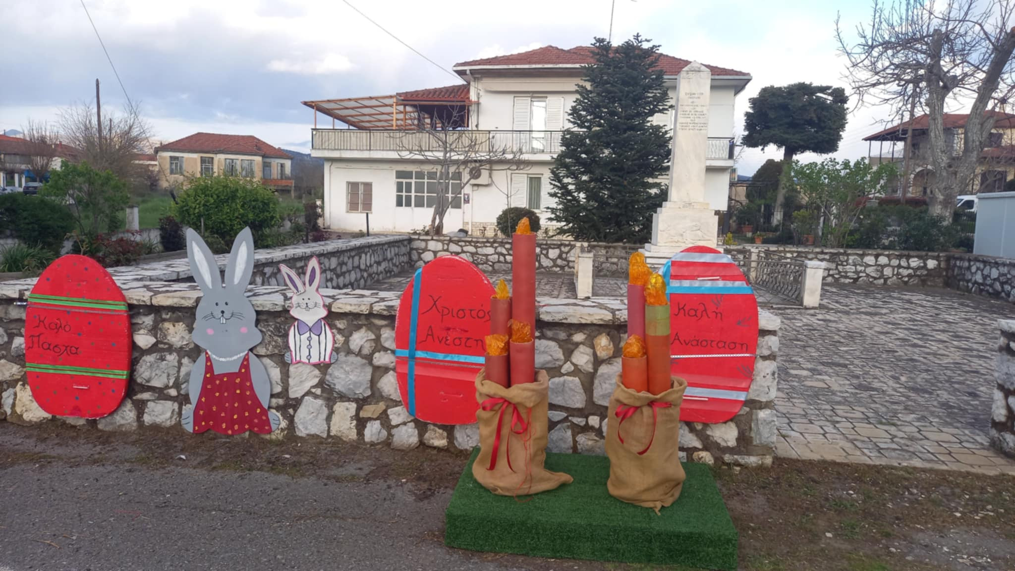 Στολίστηκε με πασχαλινό διάκοσμο η είσοδος της Κοινότητας λόγω των ημερών...