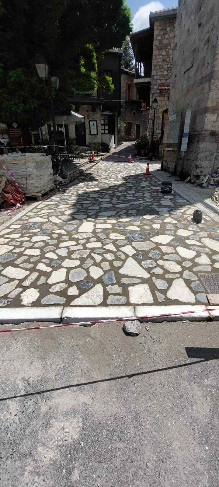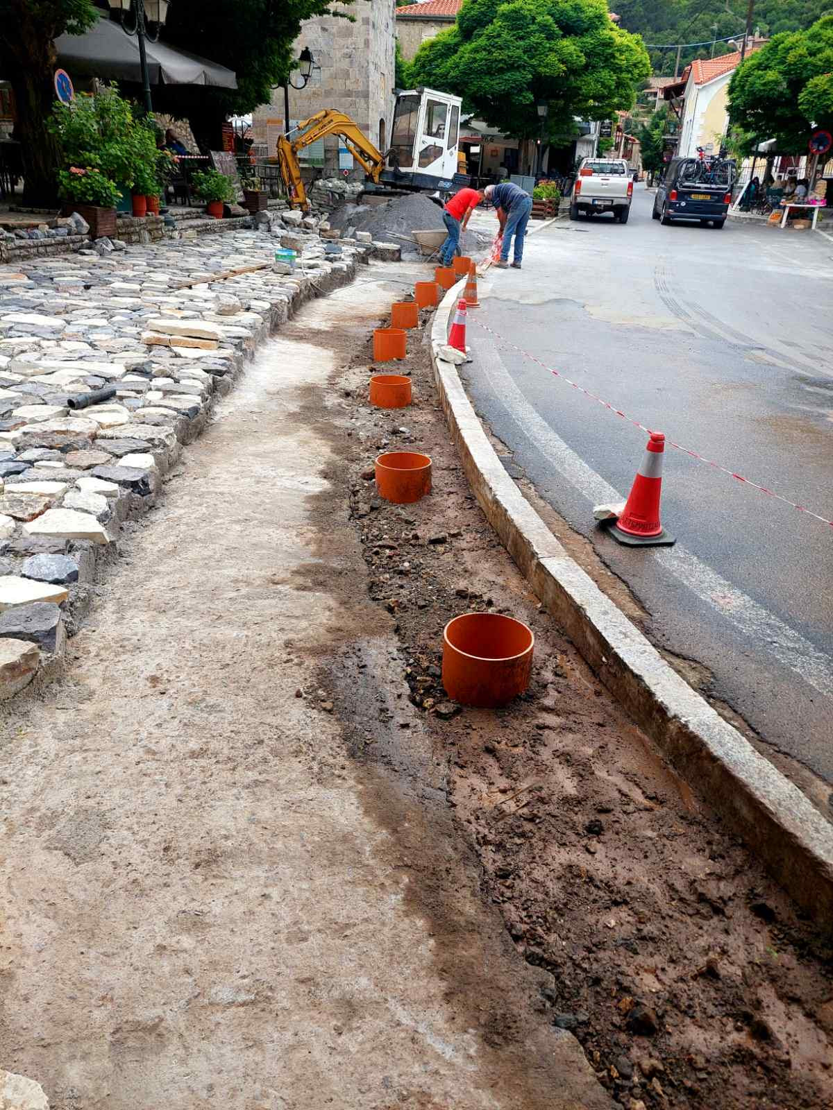 Εκτελέστηκαν επίσης χωματουργικές παρεμβάσεις καθώς και δημιουργία νέας υπόβασης με σκυρόδεμα, έτσι ώστε να εξασφαλιστεί η μακροχρόνια σταθερότητα της πλακόστρωσης, συμβάλλοντας στην ανθεκτικότητα του έργου στο χρόνο και τις καιρικές συνθήκες. Οι υποδομές πλέον πληρούν σύγχρονες προδιαγραφές αντοχής και ασφάλειας, χωρίς να αλλοιώνεται η φυσιογνωμία της περιοχής.