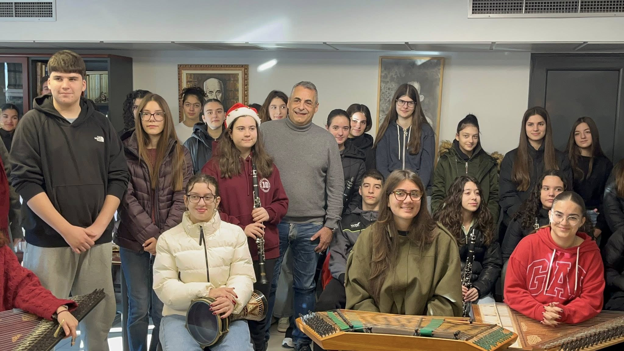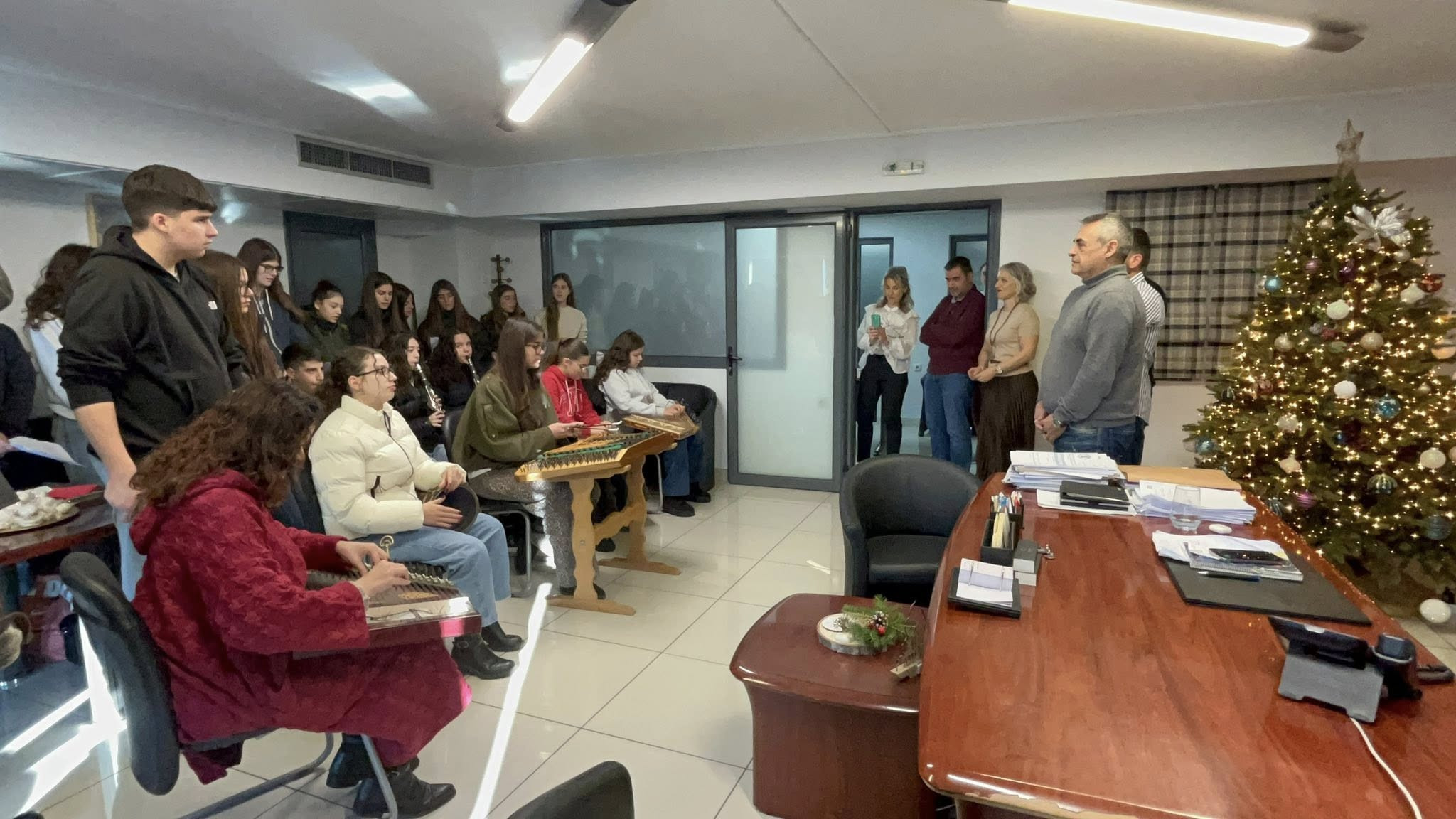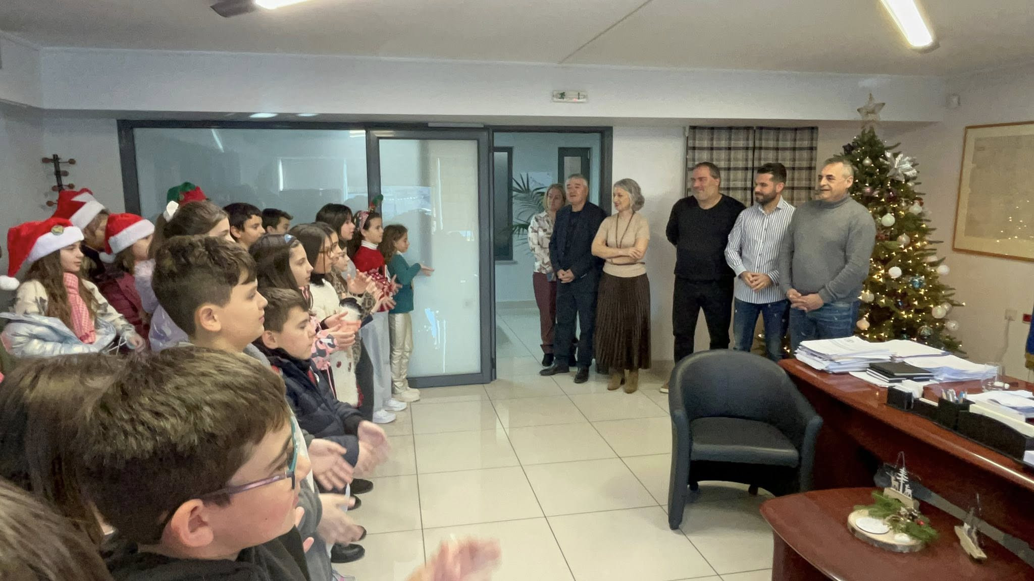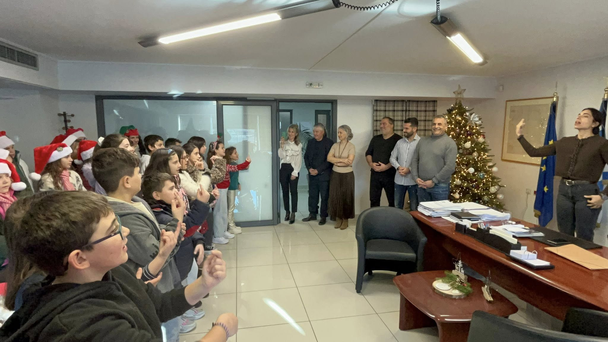 Ο Δήμαρχος υποδέχθηκε με ιδιαίτερη χαρά τους μαθητές και τις μαθήτριες και αντάλλαξε μαζί τους ευχές για Καλά Χριστούγεννα, υγεία και πρόοδο.
