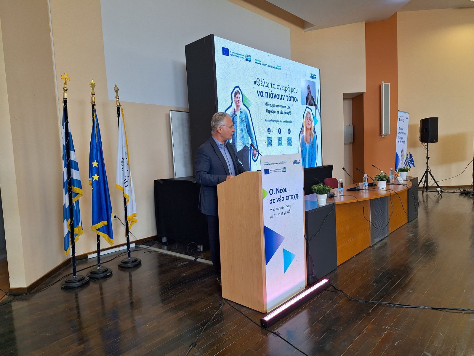 Στο γεμάτο από νέους αμφιθέατρο του Πανεπιστημίου Πελοποννήσου στην Τρίπολη, πραγματοποιήθηκε την Τετάρτη 23 Οκτωβρίου 2024 η εκδήλωση με τίτλο «Οι Νέοι σε μία Νέα Εποχή!», στο πλαίσιο του Προγράμματος Δίκαιης Αναπτυξιακής Μετάβασης. Η εκδήλωση διοργανώθηκε από την Ειδική Υπηρεσία Δίκαιης Αναπτυξιακής Μετάβασης (ΕΥΔΑΜ), με την υποστήριξη του Πανεπιστημίου Πελοποννήσου, του Green Tank και του Συνδέσμου Υποτρόφων του Ιδρύματος Ωνάση.