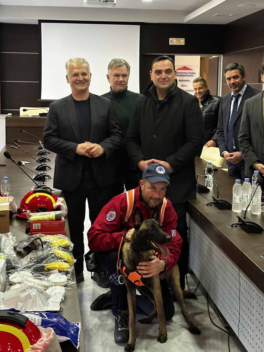 Να σημειωθεί ότι οι παρευρισκόμενοι είχαν την ευκαιρία να γνωρίσουν και τον άρτια εκπαιδευμένο σκύλο έρευνας της ομάδας, ένα ιδιαίτερα αξιαγάπητο Μαλινουά, που αποτελεί σημαντικό επιχειρησιακό εργαλείο στις αποστολές της.