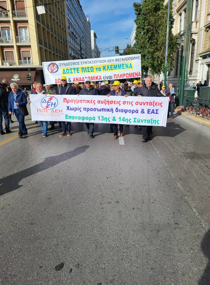 Από την Συγκέντρωση και την πορεία των Συνταξιούχων στο Υπουργείο Εργασίας και την πορεία στην Βουλή. Μαζική η συμμετοχή των συνταξιούχων της ΔΕΗ καθώς και των Συνταξιούχων από Καλάματα - Μεγαλόπολη - Τρίπολη.