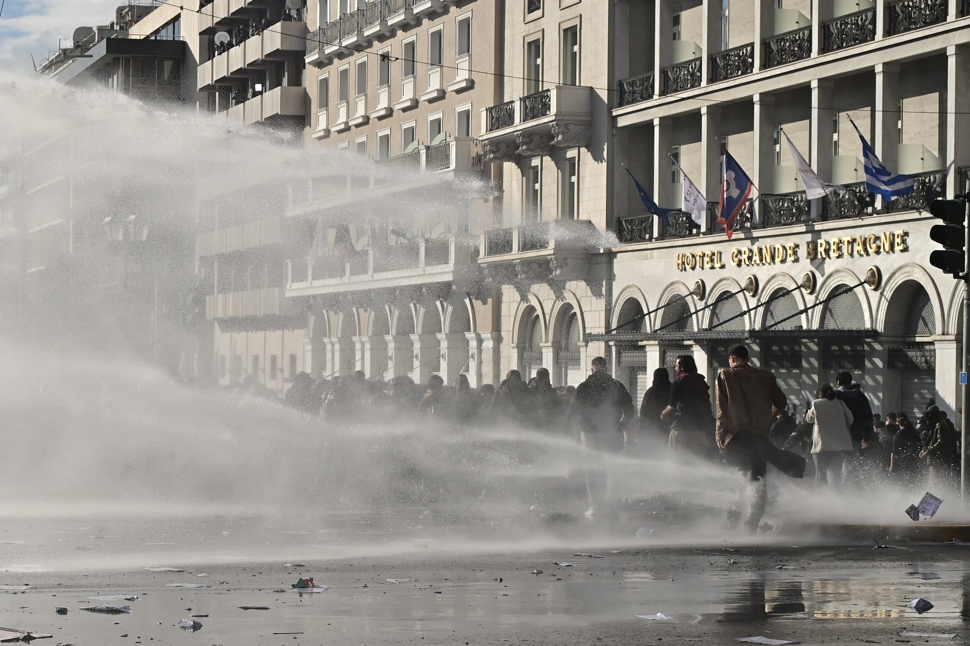Στη συνέχεια, βγήκε στο πεδίο ο "Αίαντας" της ΕΛ.ΑΣ. και με τη χρήση νερού απομάκρυνε τους διαδηλωτές που είχαν συγκεντρωθεί μπροστά στο Μνημείο του Αγνώστου Στρατιώτη.