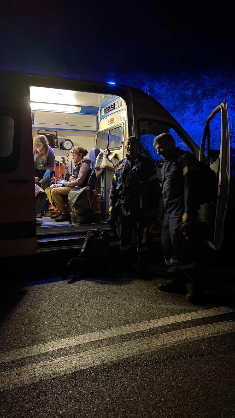 Στη συνέχεια, έφτασαν ενισχύσεις από την Πυροσβεστική Υπηρεσία Άστρους, ενώ κινητοποιήθηκαν και δυνάμεις από την Τρίπολη, καθώς και ο Αντιδήμαρχος Πολιτικής Προστασίας κ. Ηλίας Καμβύσης. Μετά από πολύωρη και συντονισμένη επιχείρηση οι δύο αναρριχήτριες εντοπίστηκαν και μεταφέρθηκαν με ασφάλεια στον οδικό άξονα, όπου είχε ήδη φτάσει ασθενοφόρο του Κέντρου Υγείας με ιατρό για την παροχή των απαραίτητων πρώτων βοηθειών.