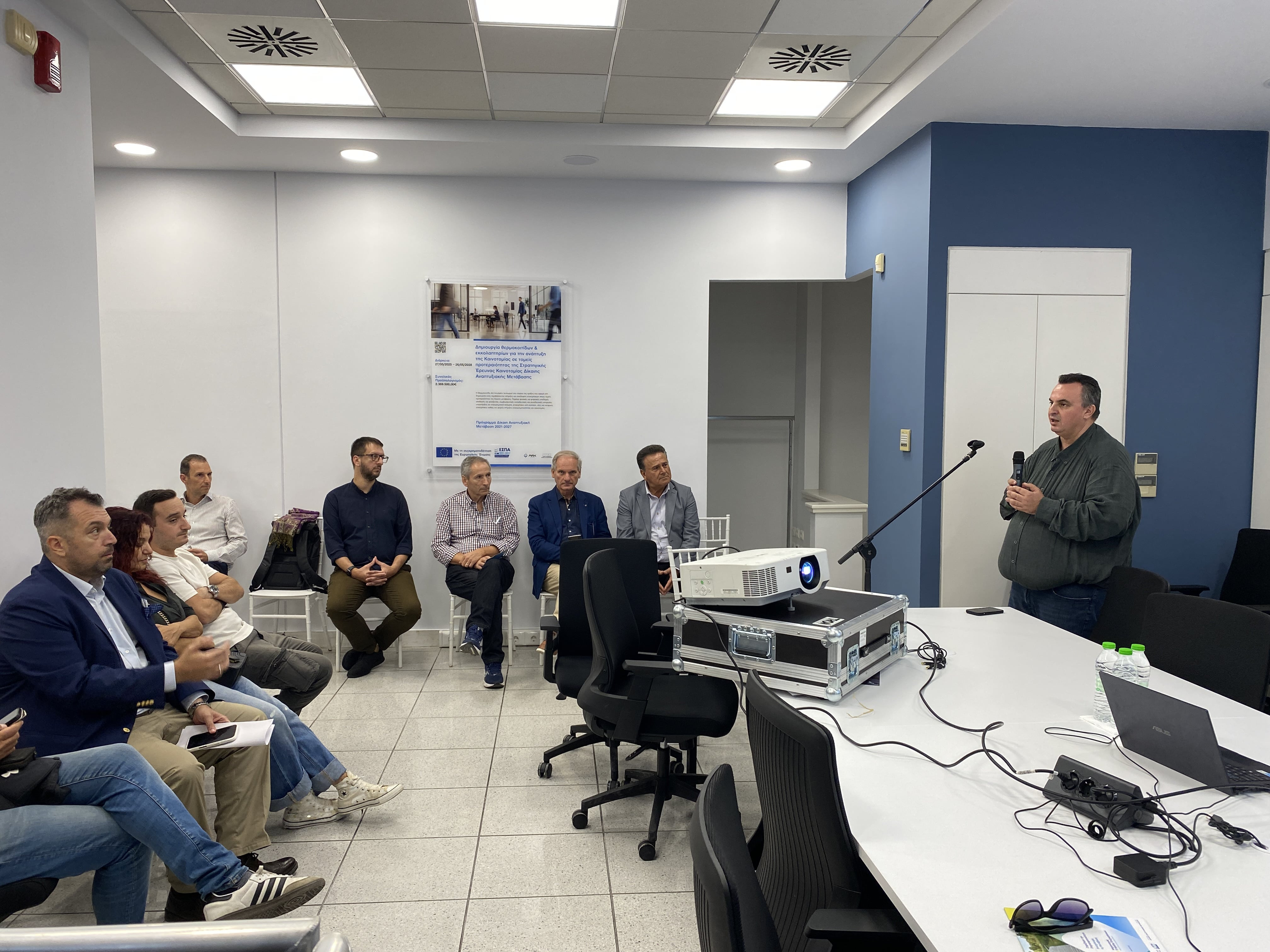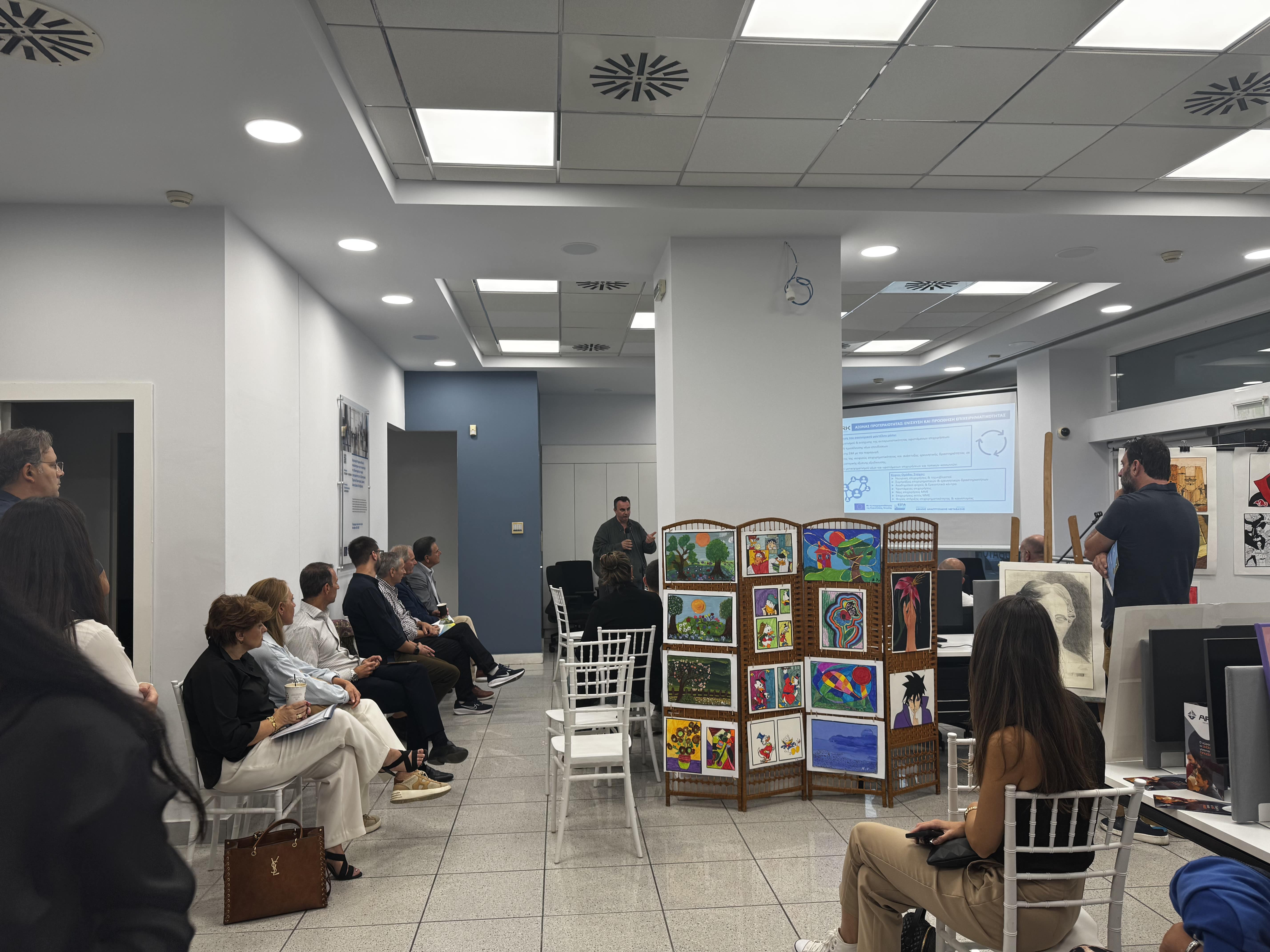 Το απόγευμα της ίδιας ημέρας πραγματοποιήθηκε το πρώτο εργαστήριο επιχειρηματικότητας, στο οποίο συμμετείχαν οι ωφελούμενες επιχειρήσεις που έχουν ήδη ενταχθεί στο πρόγραμμα υποστήριξης της Θερμοκοιτίδας.