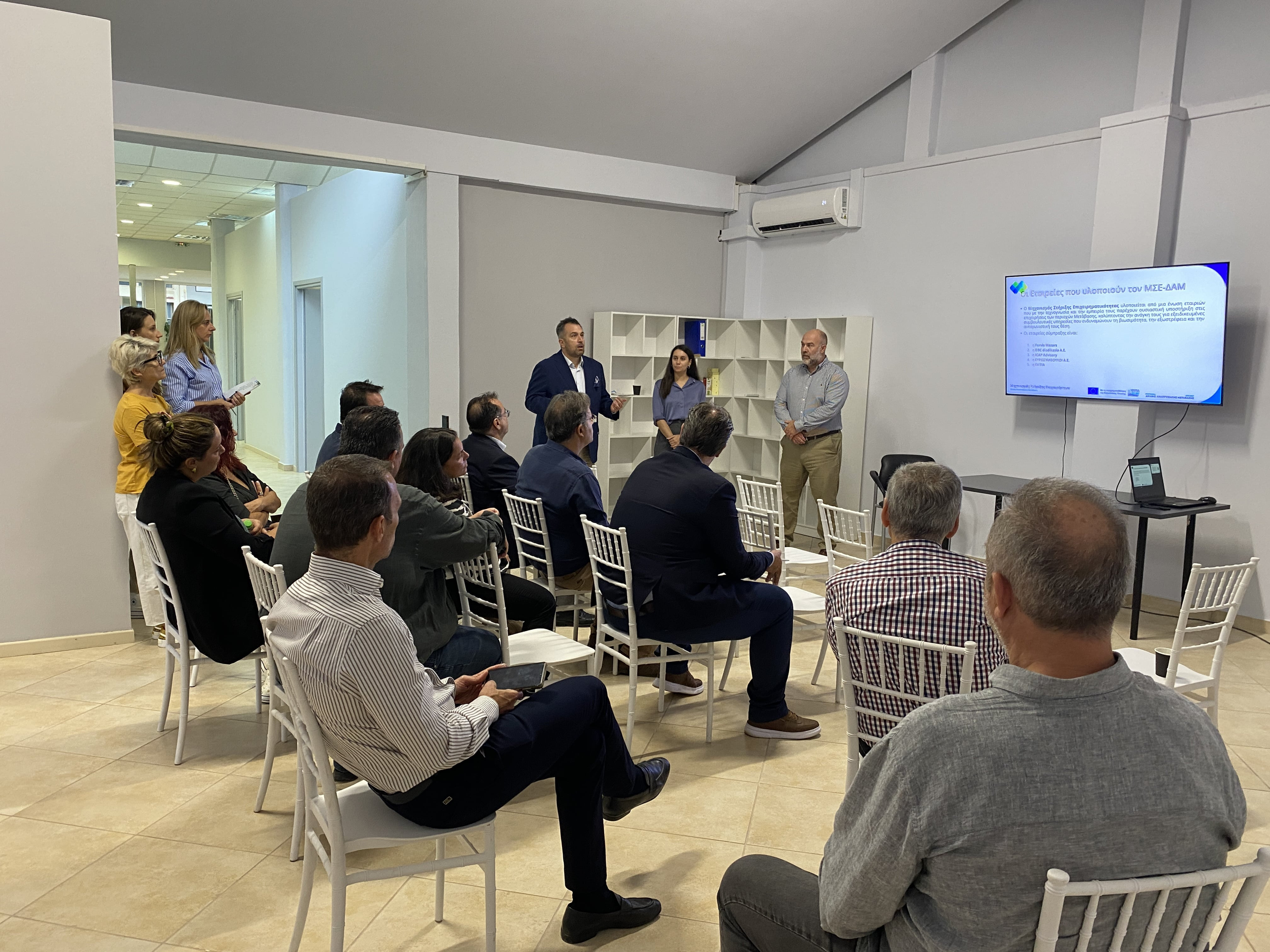 Εκ μέρους των δομών οι κ.κ. Γιάννης Παπαδημητρίου από τη Θερμοκοιτίδα Ark Incubator, Γεώργιος Τσουκαλάς από το Μηχανισμό Στήριξης Επιχειρήσεων και Ηλίας Νικολούλης από τα Κέντρα Ανάπτυξης Δεξιοτήτων και Απασχόλησης διερεύνησαν πρακτικούς τρόπους διασύνδεσης των δομών και προσαρμογής των προσφερόμενων υπηρεσιών, ώστε κάθε ωφελούμενη επιχείρηση να μπορεί να υποστηριχθεί και από τις τρείς δομές ολιστικά σε κάθε της ανάγκη. Για το σκοπό αυτό ορίστηκαν πρόσωπα επαφής από κάθε δομή και εξετάστηκαν συγκεκριμένες κοινές μεθοδολογίες εξυπηρέτησης των επιχειρήσεων.