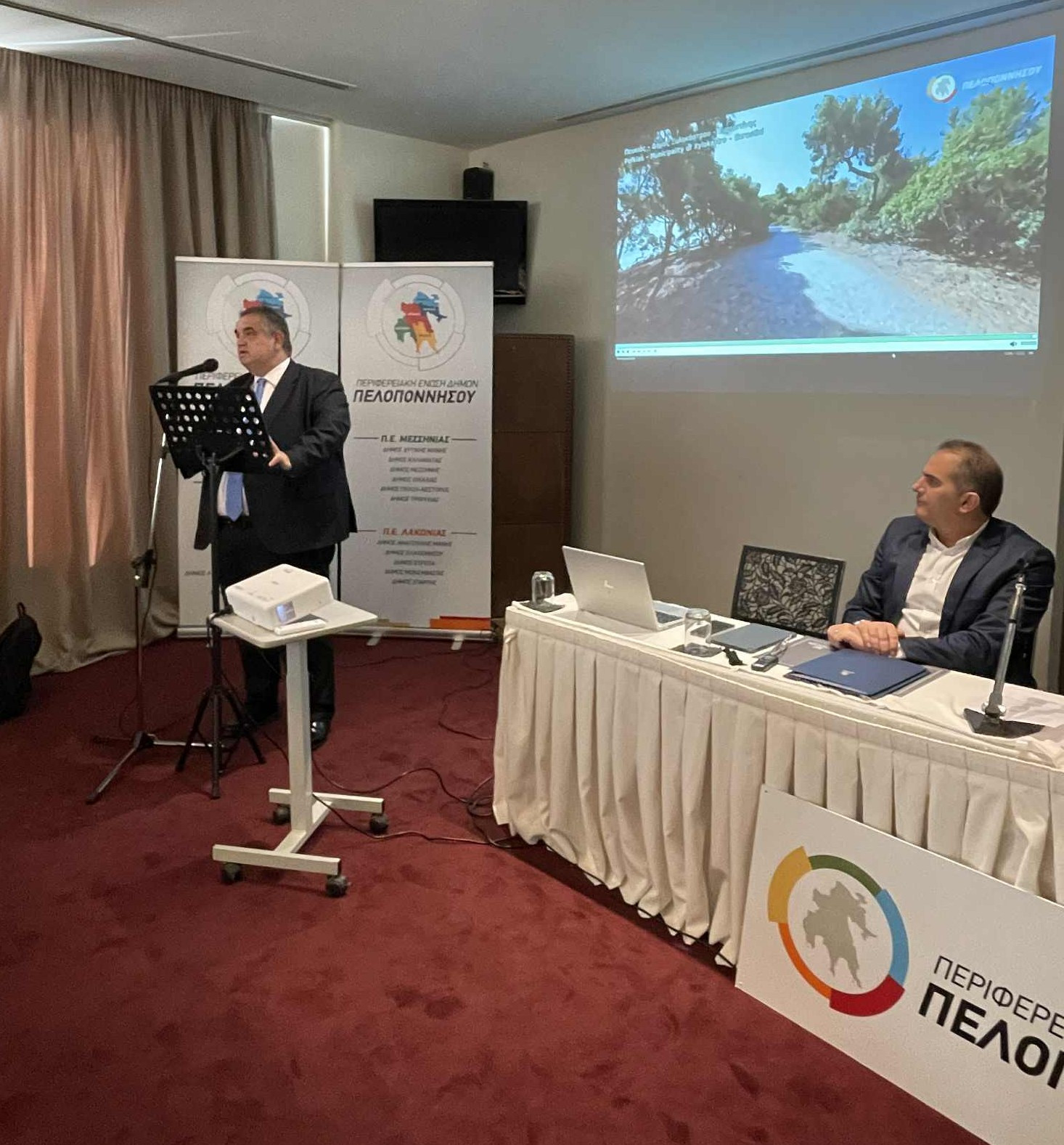 Ο Δήμαρχος Γορτυνίας και μέλος του ΔΣ της ΚΕΔΕ Ευστάθιος Κούλης στη Γενική Συνέλευση ΠΕΔ Πελοποννήσου.
