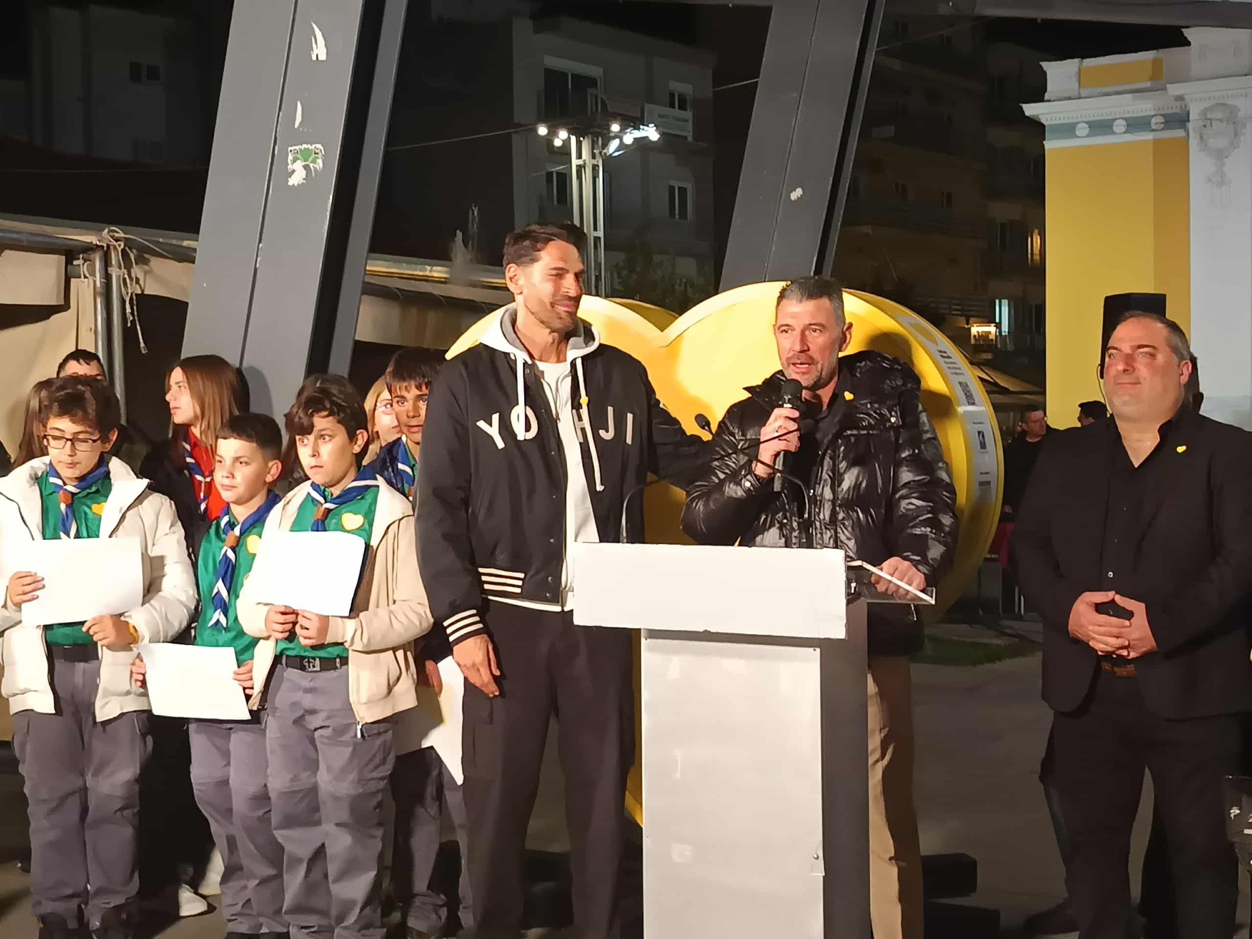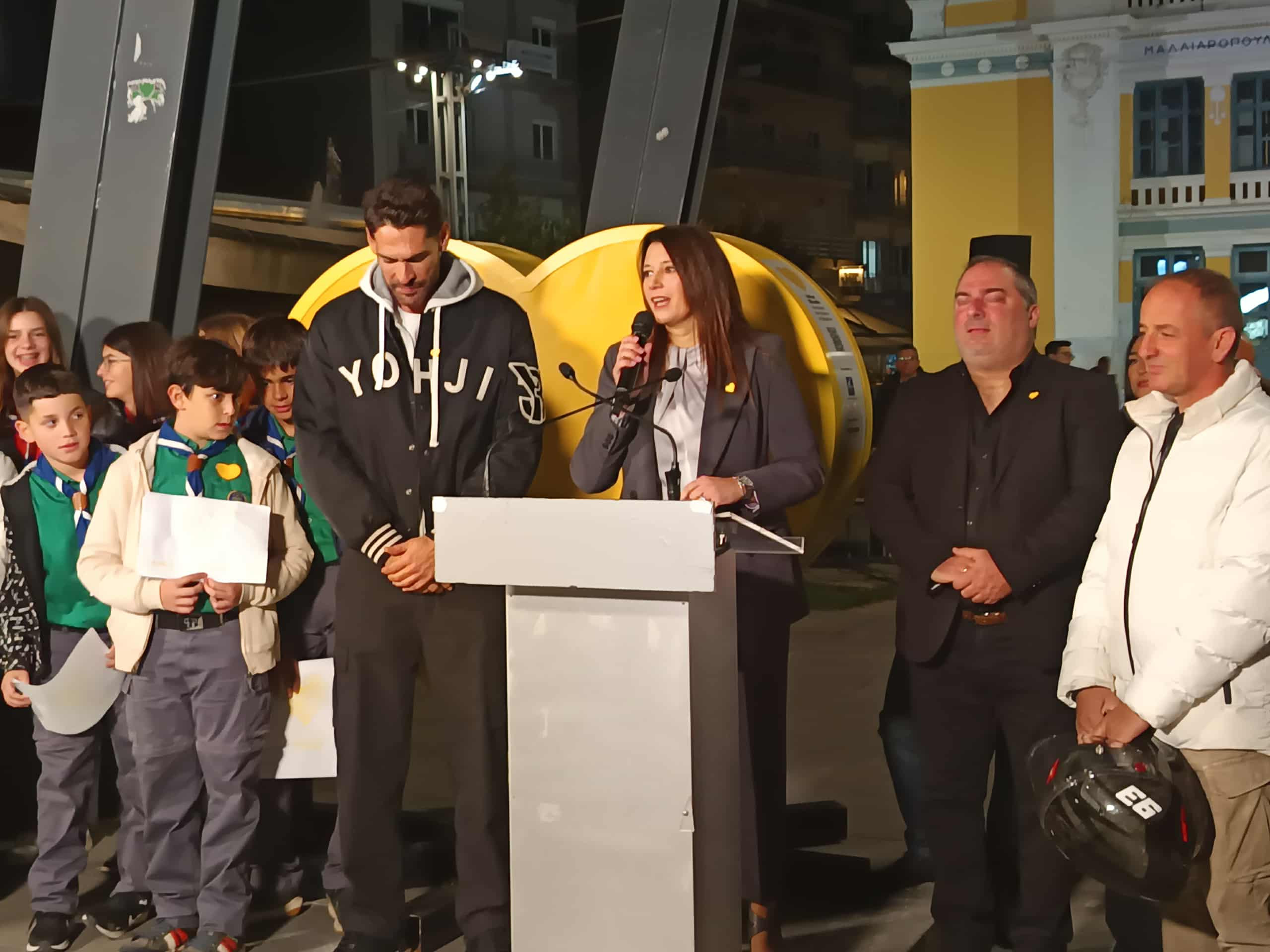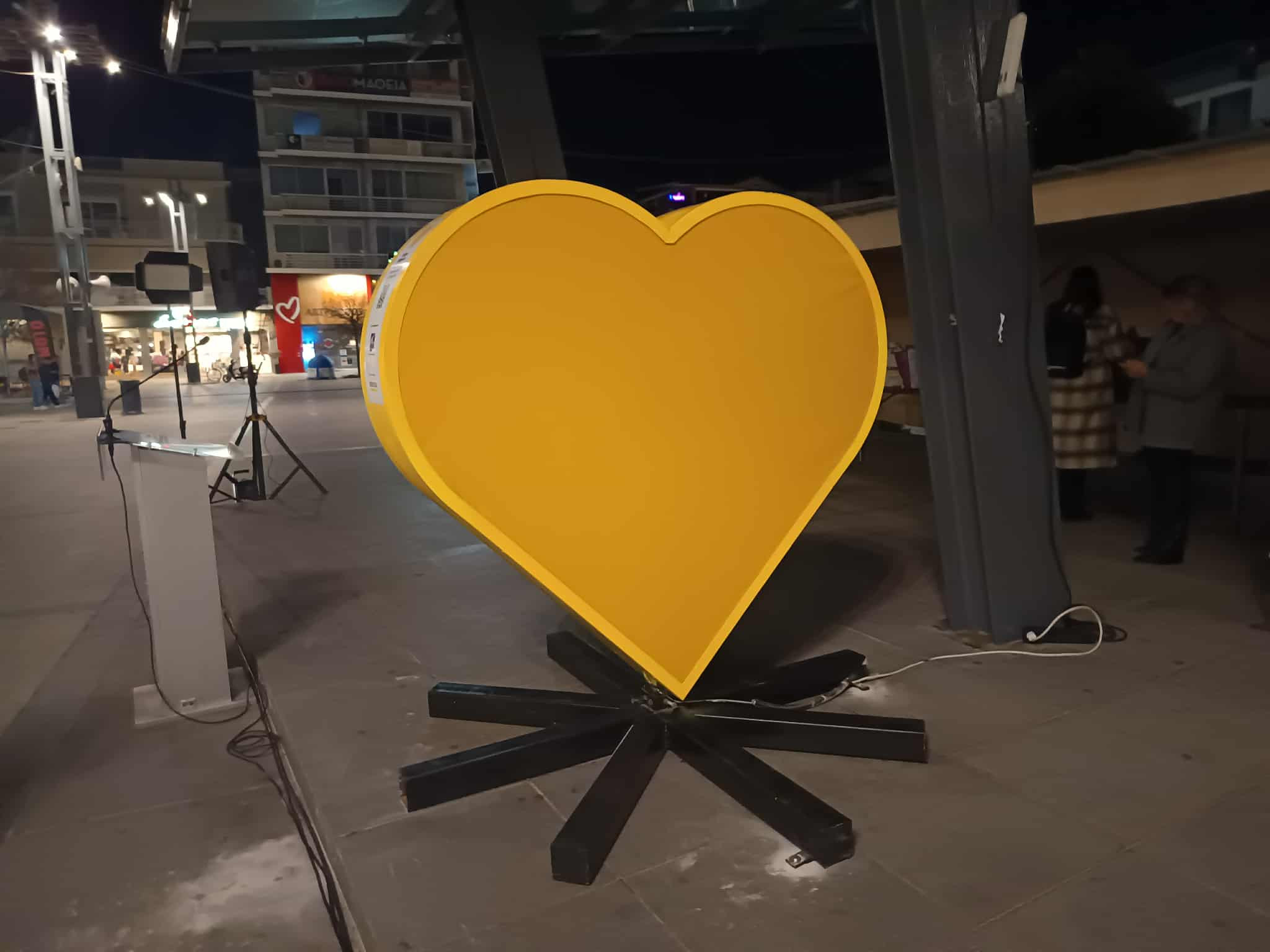 Φωταγωγήθηκε η "κίτρινη καρδιά" στην πλατεία Πετρινού της Τρίπολης (pics-vid)