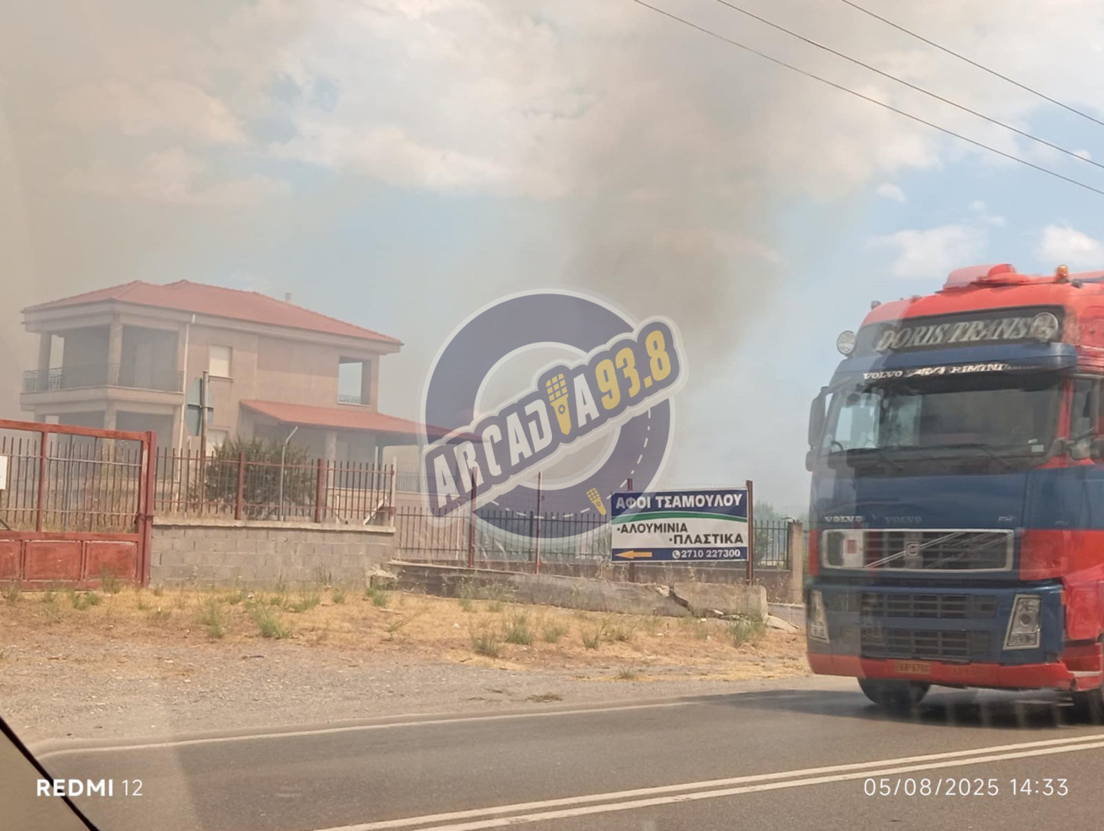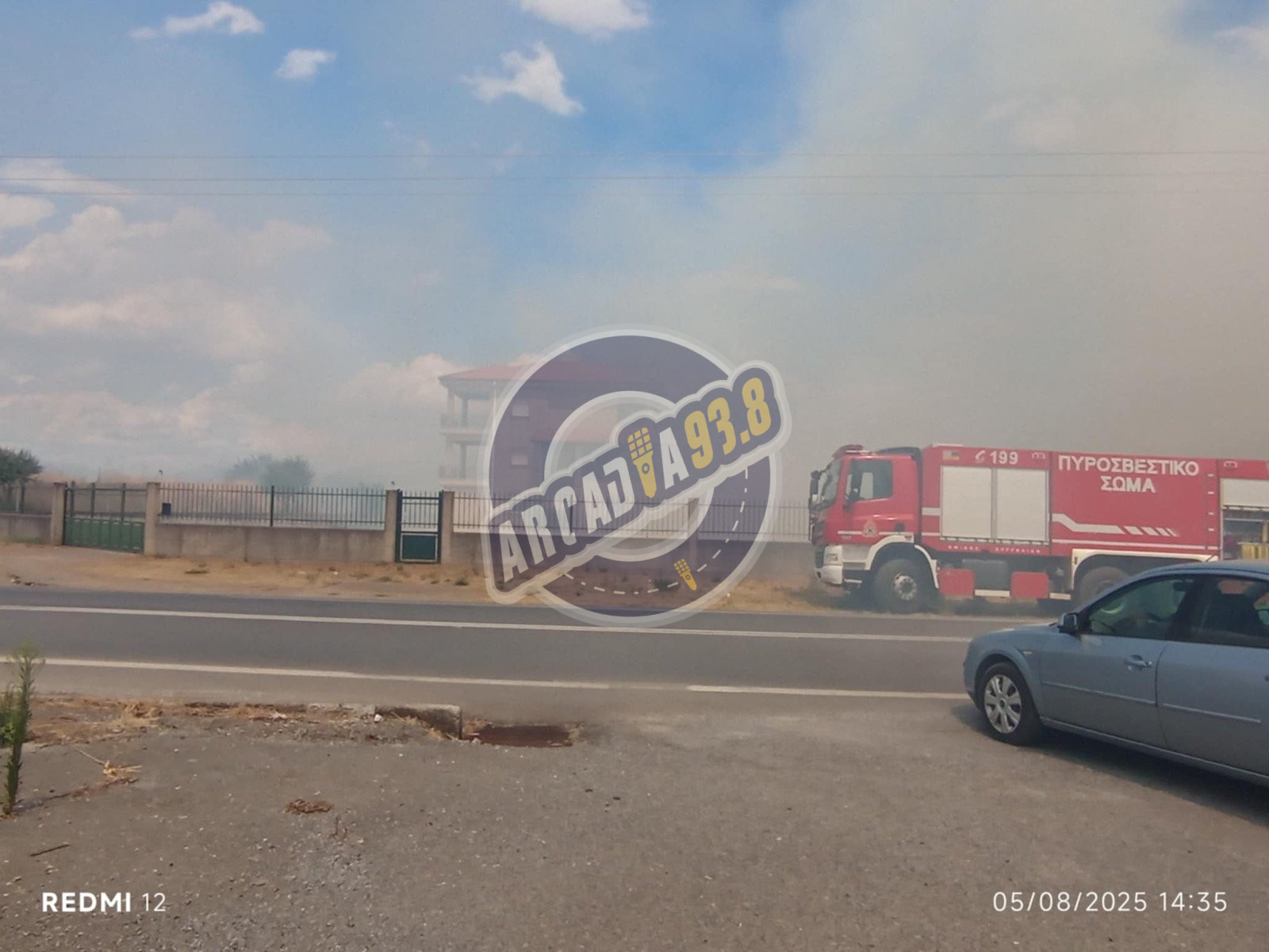 Φωτιά ξέσπασε το μεσημέρι της Τρίτης, 5 Αυγούστου 2025, στο 3ο χλμ. Τρίπολης - Σπάρτης.