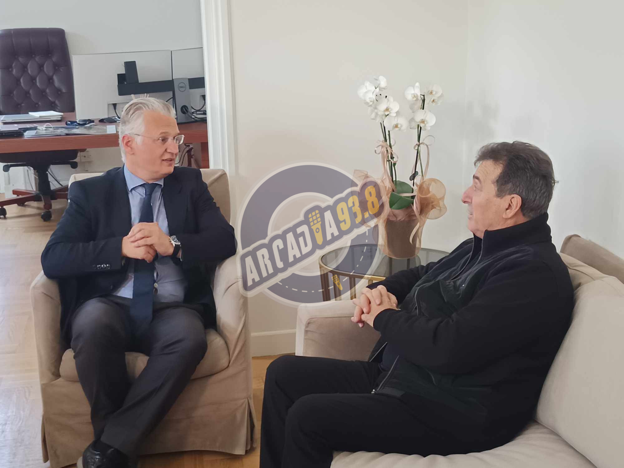 Τέλος, ο κύριος Χρυσοχοΐδης συναντήθηκε και με τον Περιφερειάρχη της Πελοποννήσου, κ. Δημήτρη Πτωχό, στην έδρα της Περιφέρειας, στην πλατεία Εθνάρχου Μακαρίου.