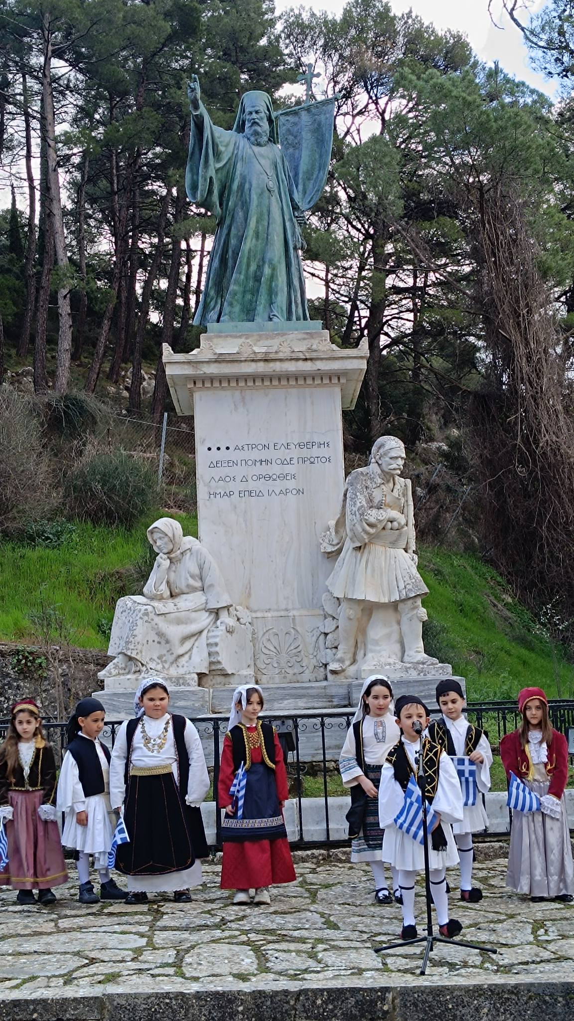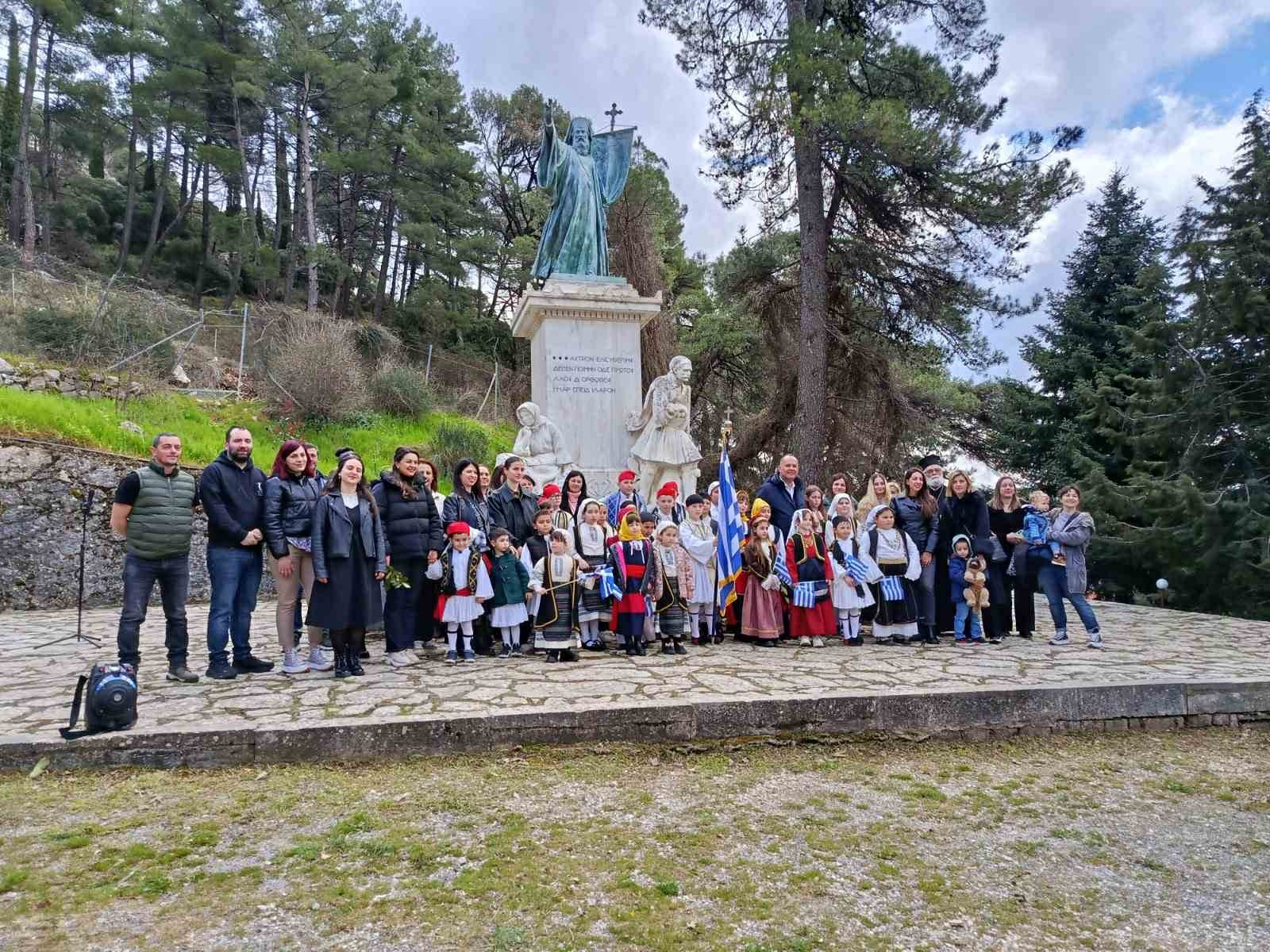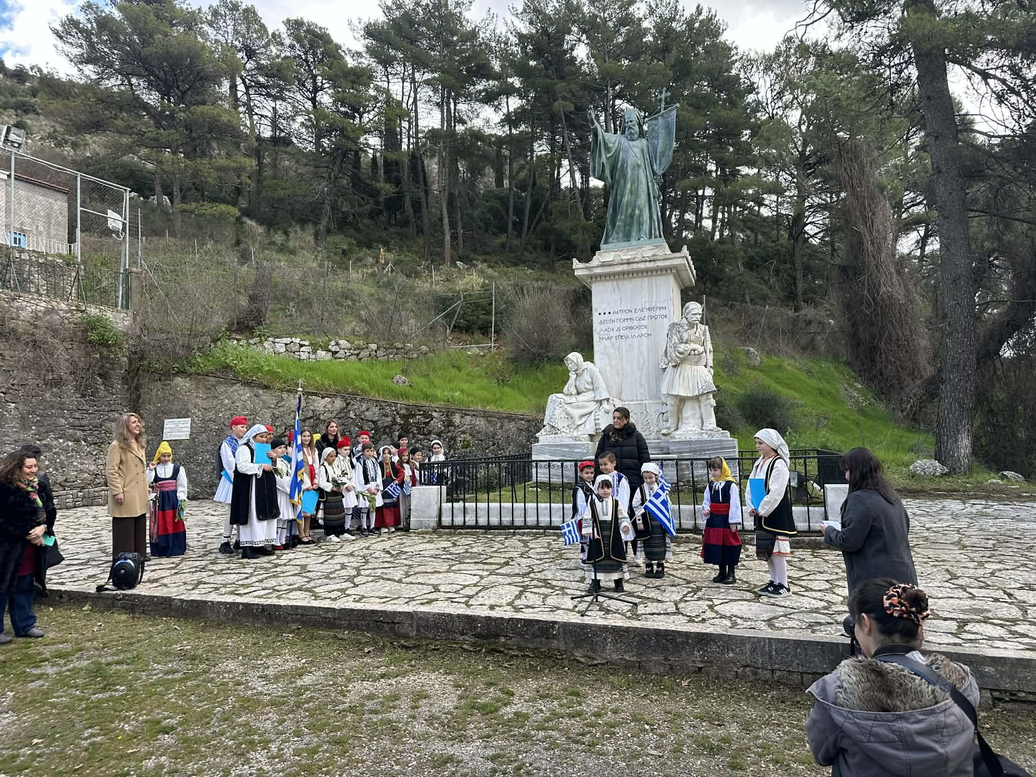 Στο μνημείο τελέστηκε τρισάγιο στη μνήμη του μεγάλου ιεράρχη, ενώ στη συνέχεια οι μαθητές και οι μαθήτριες απήγγειλαν ποιήματα αφιερωμένα στον Αγώνα και τους ήρωές του, δίνοντας φωνή και ψυχή στα ιδανικά του '21.