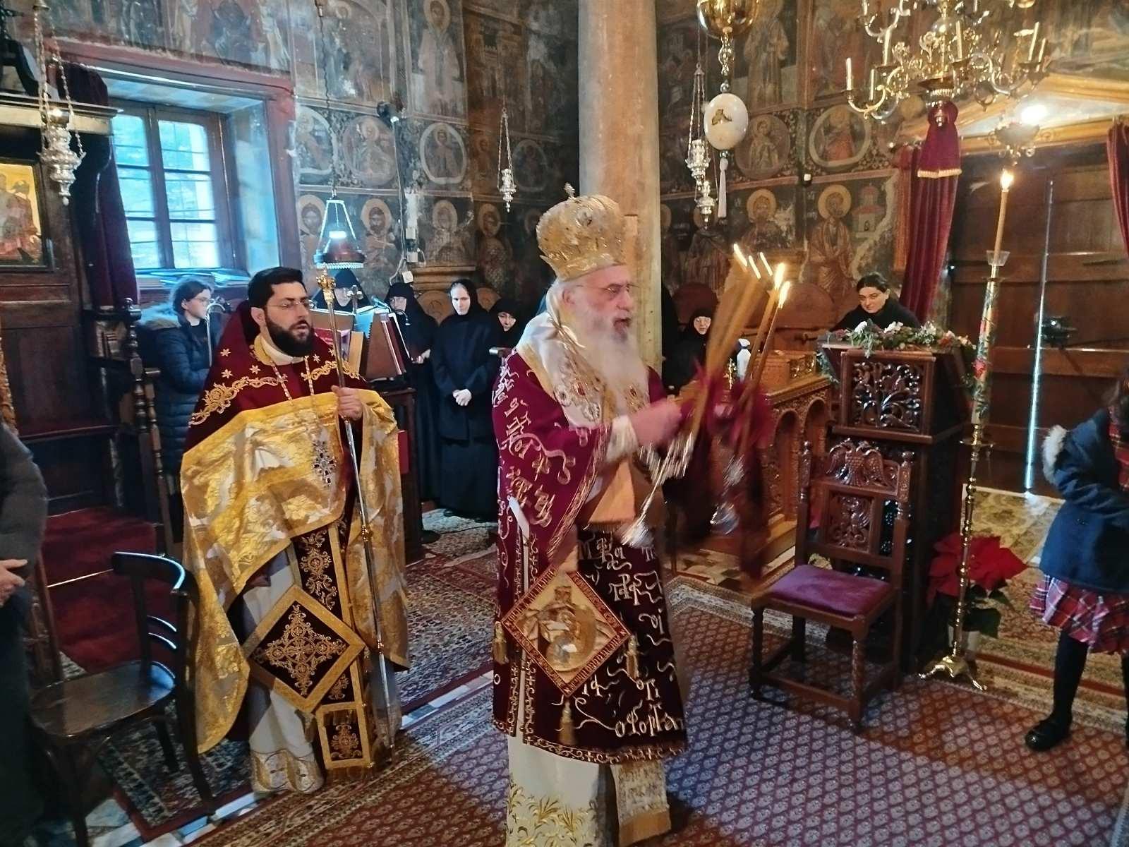 Με την ευκαιρία της εορτής της Συνάξεως της Υπεραγίας Θεοτόκου, δεύτερη ημέρα των Χριστουγέννων, o Σεβασμιώτατος Μητροπολίτης Μαντινείας και Κυνουρίας κ. Επιφάνιος λειτούργησε στην Ιερά Μονή Λουκούς.