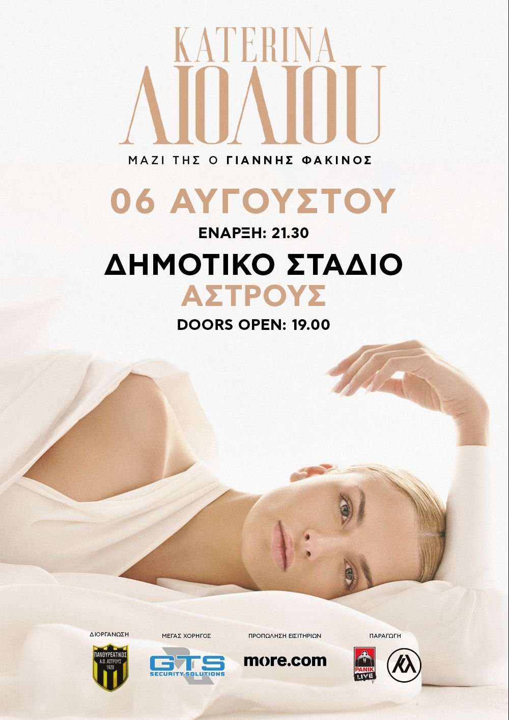 Αστείρευτη ενέργεια… μοναδική σκηνική παρουσία… Μεγάλες επιτυχίες που λατρεύουμε να τραγουδάμε!! Τετάρτη 6 Αυγούστου η Κατερίνα Λιόλιου στο Δημοτικό Γήπεδο Άστρους "Αναστάσιος Μίχος" !