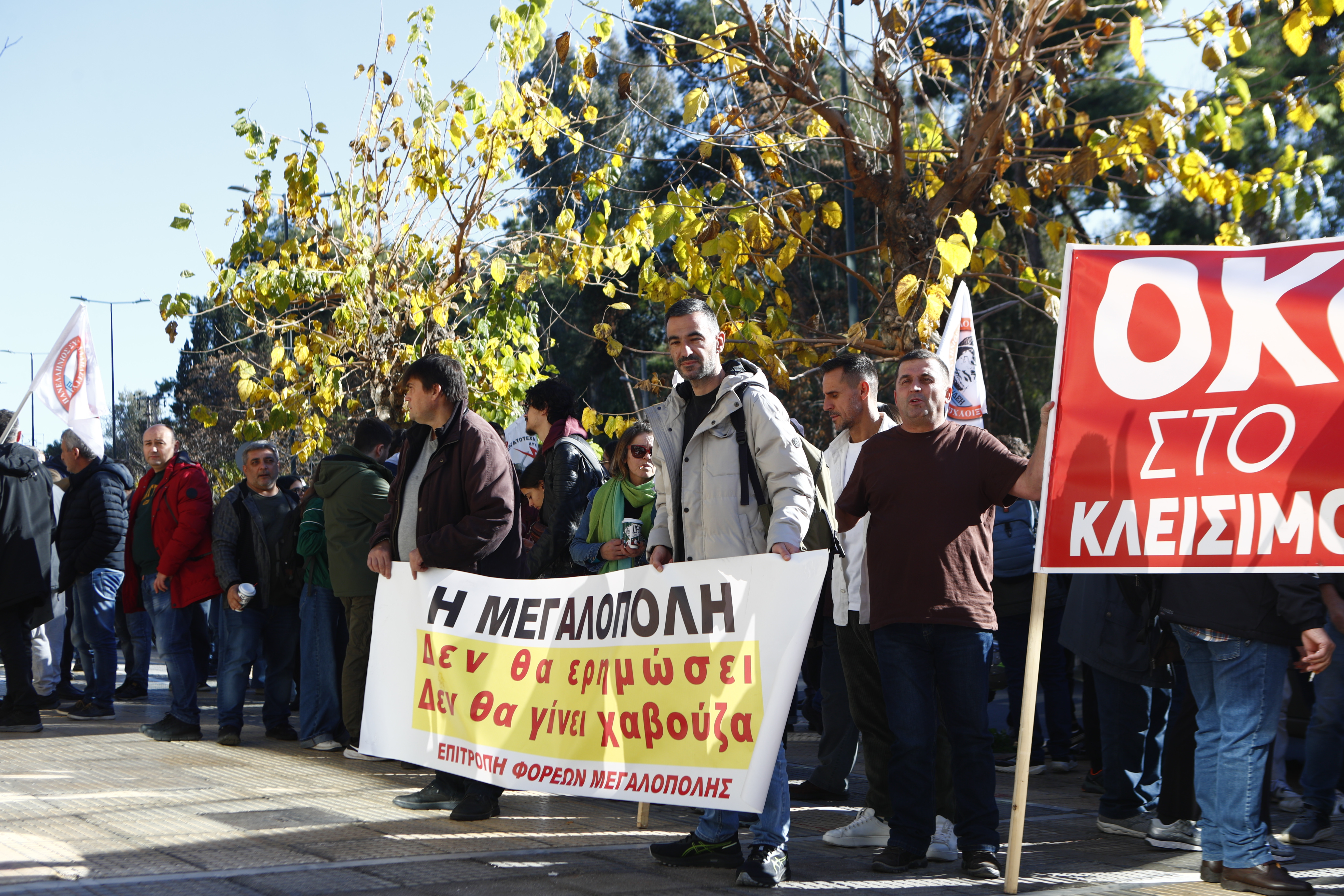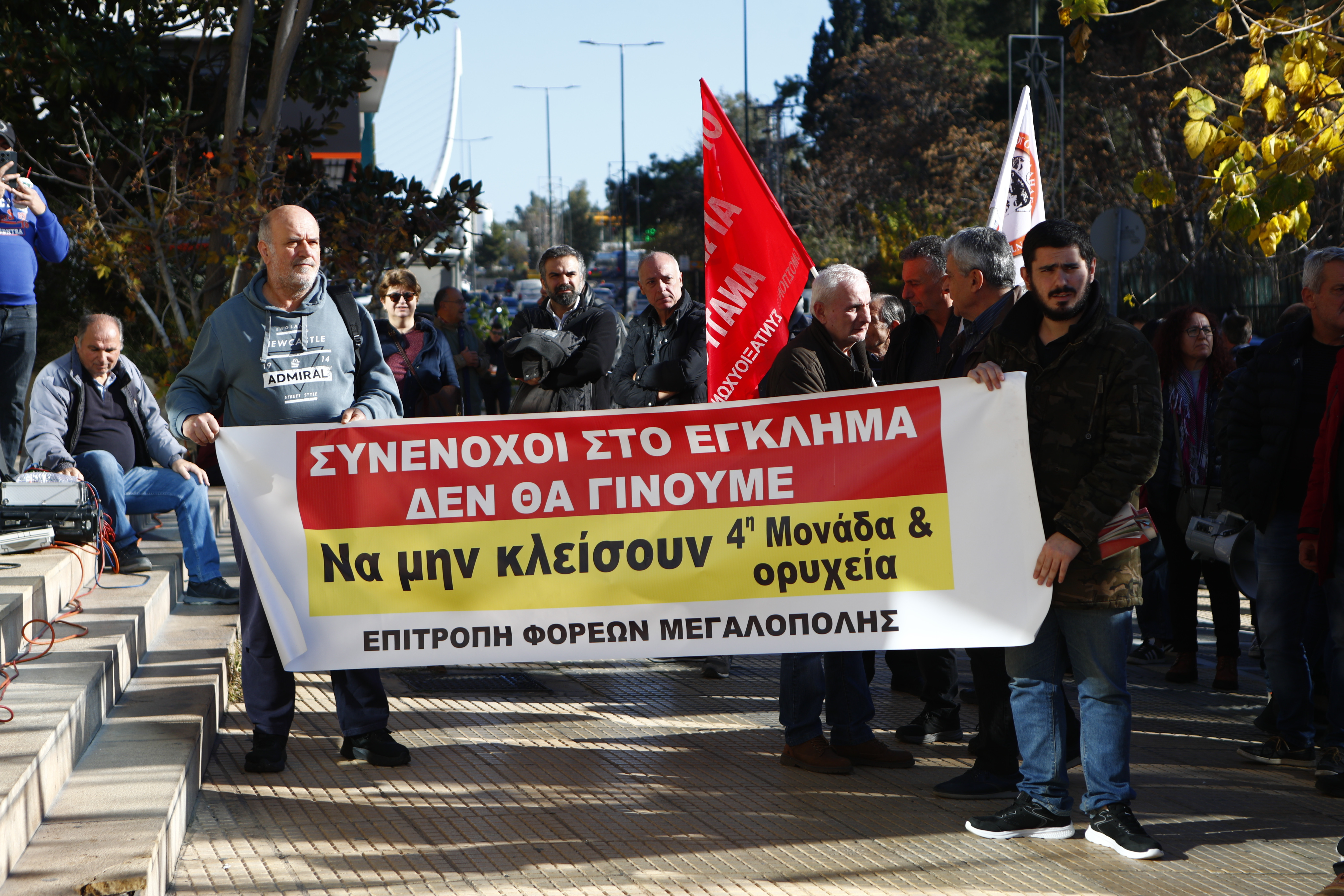 Συγκέντρωση διαμαρτυρίας από την Επιτροπή Φορέων Μεγαλόπολης και της Επιτροπής Αγώνα των εργαζομένων του ΑΗΣ Μελίτης και των κατοίκων της περιοχής για να μην κλείσουν τα ορυχεία και η 4η Μονάδα της ΔΕΗ, στο υπουργείο Περιβάλλοντος και Ενέργειας στην Αθήνα, Τετάρτη 11 Δεκεμβρίου 2024.