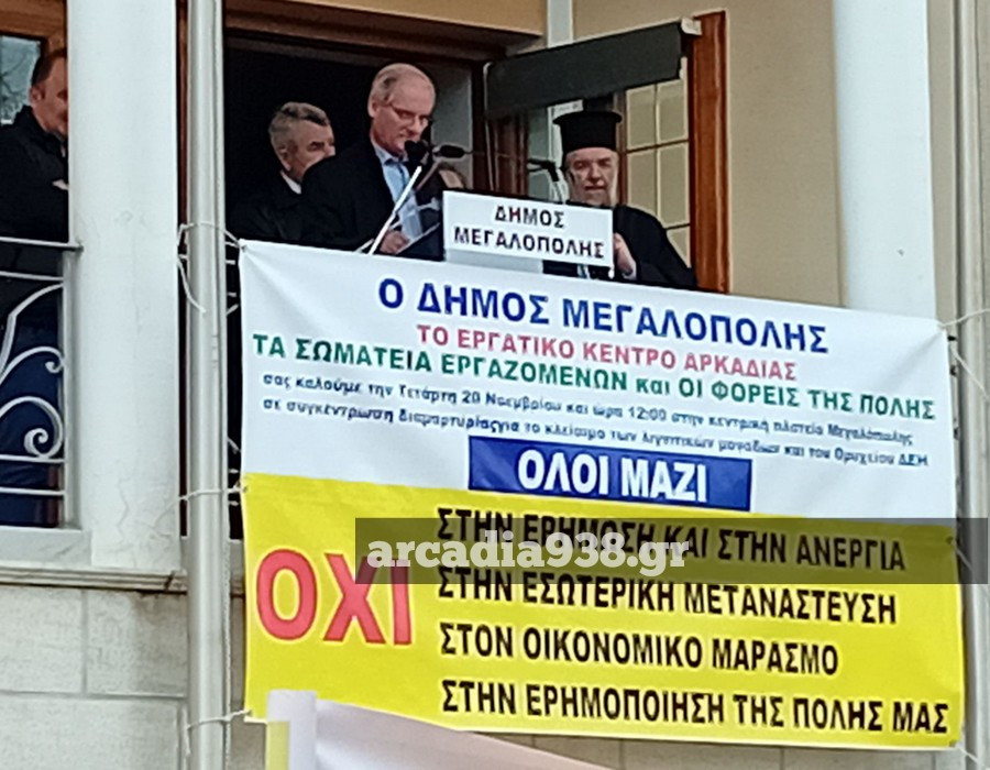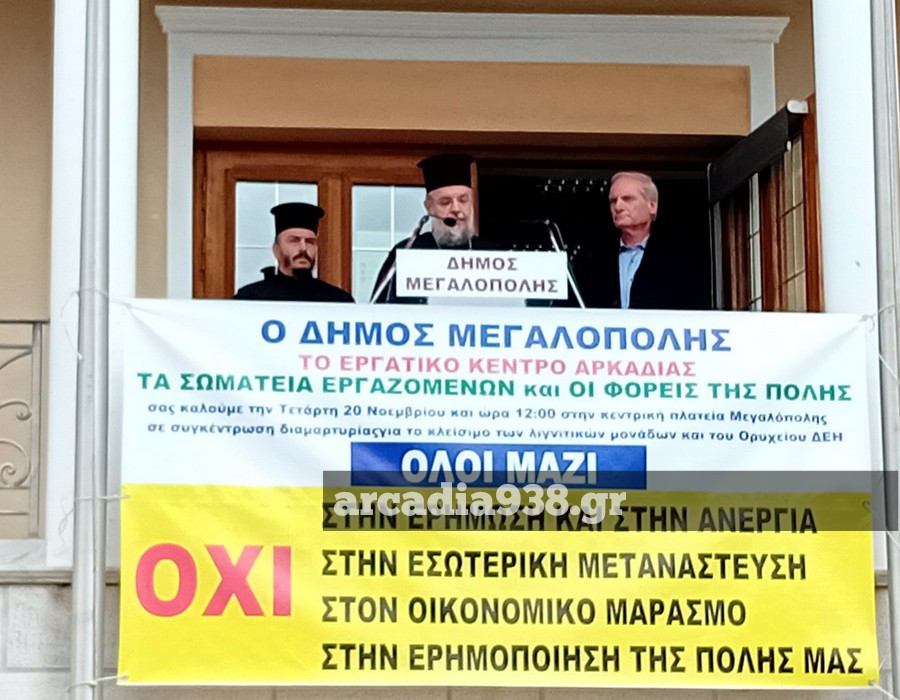 Ο Δήμος Μεγαλόπολης, η ΓΕΝΟΠ ΔΕΗ, το Εργατικό Κέντρο Αρκαδίας, τα Σωματεία εργαζομένων οι φορείς της πόλης και πολλοί πολίτες διαμαρτύρονται για να μην περάσουν τα σχέδια της κυβέρνησης και των επιχειρηματικών ομίλων.