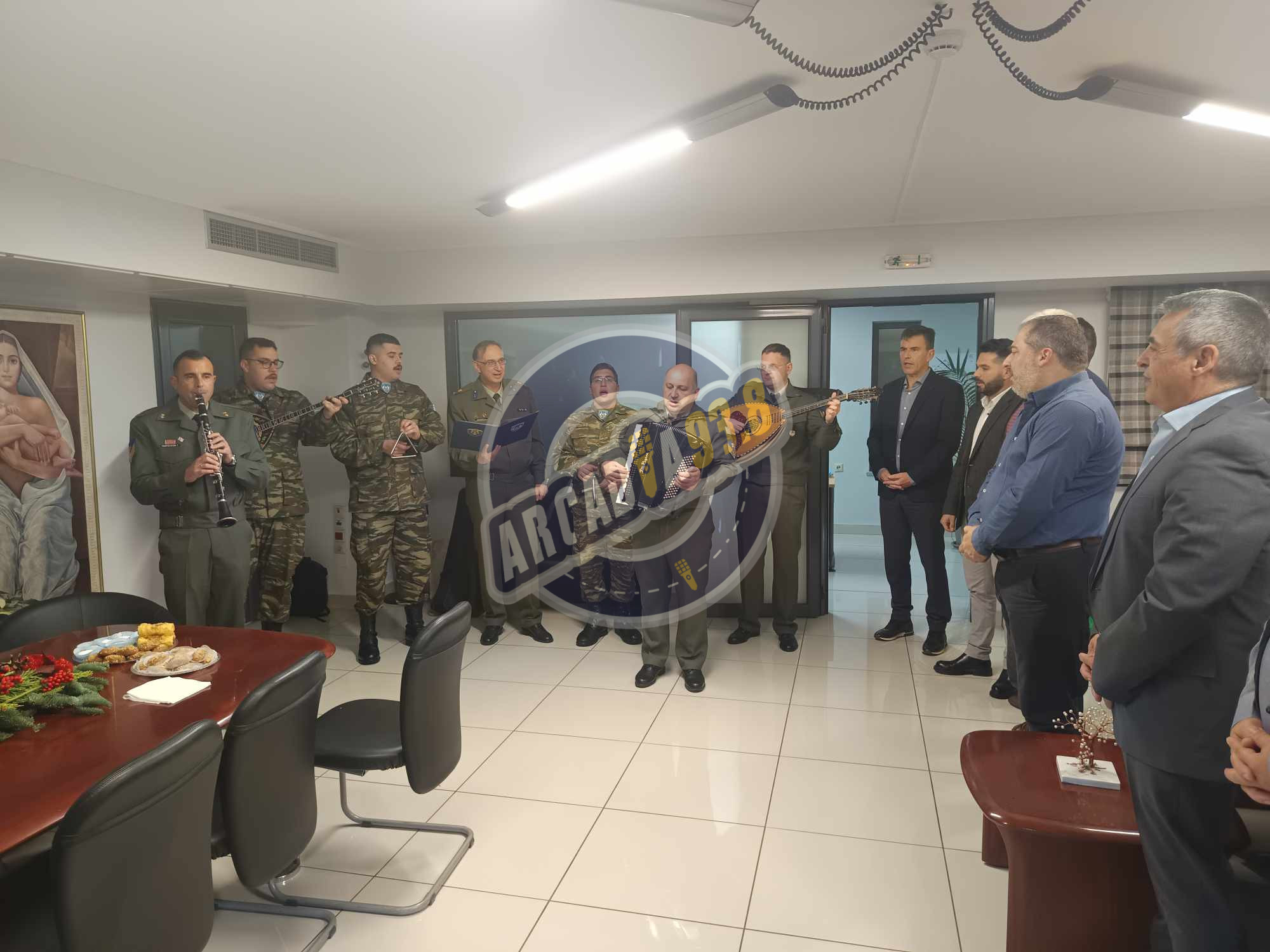 Στο δημαρχείο της Τρίπολης βρέθηκε το πρωί σήμερα και η μπάντα της 4ης Μεραρχίας Πεζικού, που εδρεύει στην πόλη μας και έψαλε τα κάλαντα και όχι μόνο.