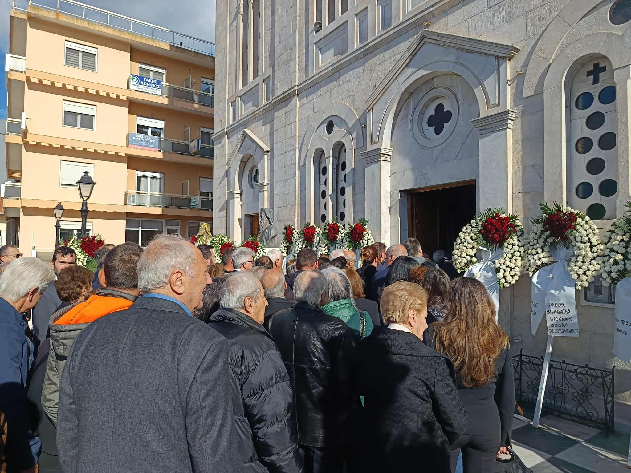 Πλήθος πολιτών βρέθηκε στον Ιερό Ναό του Αγίου Βασιλείου της Τρίπολης, προκειμένου να εκφράσουν τα συλληπητήριά τους στους οικείους του θανόντος αλλά και ν΄απευθύνουν το ύστατο "χαίρε" στον πρώην Δήμαρχο της Αρκαδικής Πρωτεύουσας.