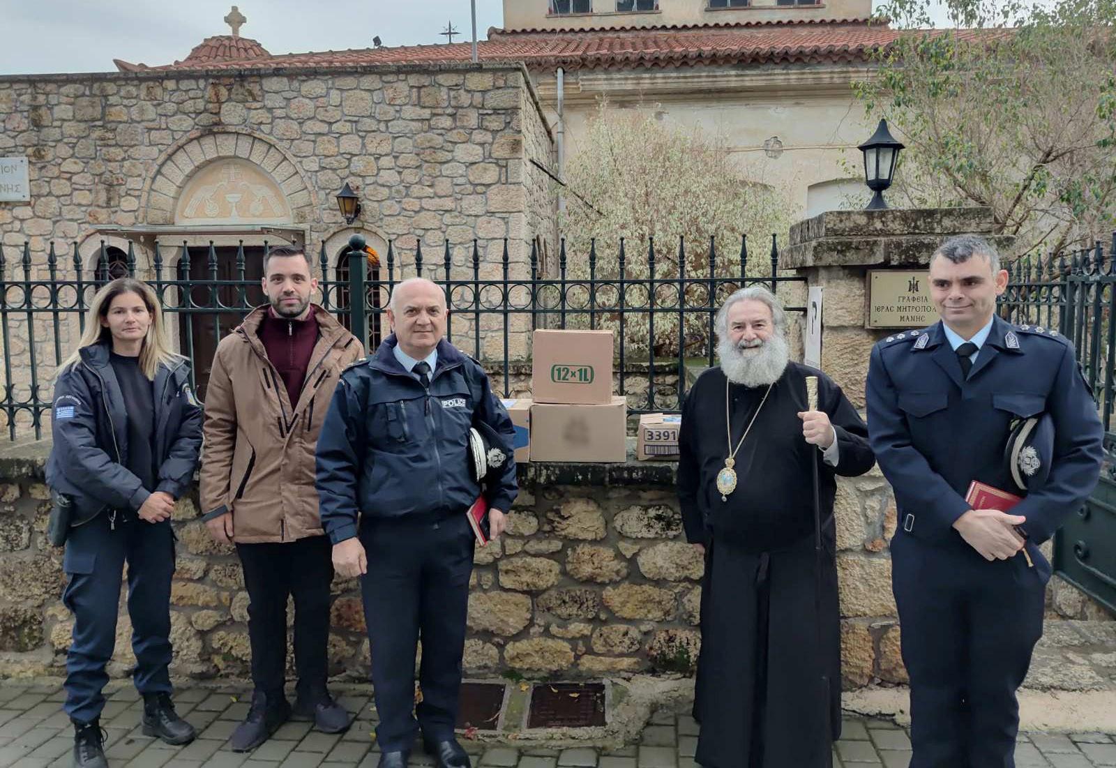 Στο πλαίσιο αυτό προσωπικό της Γενικής Περιφερειακής Αστυνομικής Διεύθυνσης Πελοποννήσου και των Διευθύνσεων Αστυνομίας Αργολίδας, Αρκαδίας, Κορινθίας, Λακωνίας και Μεσσηνίας, προσέφεραν συγκεντρωθέντα είδη (τρόφιμα, είδη ένδυσης κ.α.) σε .) σε Ιερές Μητροπόλεις και Ναούς, καθώς και σε ιδρύματα, ως μια συμβολική χειρονομία αλληλεγγύης, συμπαράστασης και αναγνώρισης της προσφοράς και του έργου τους.