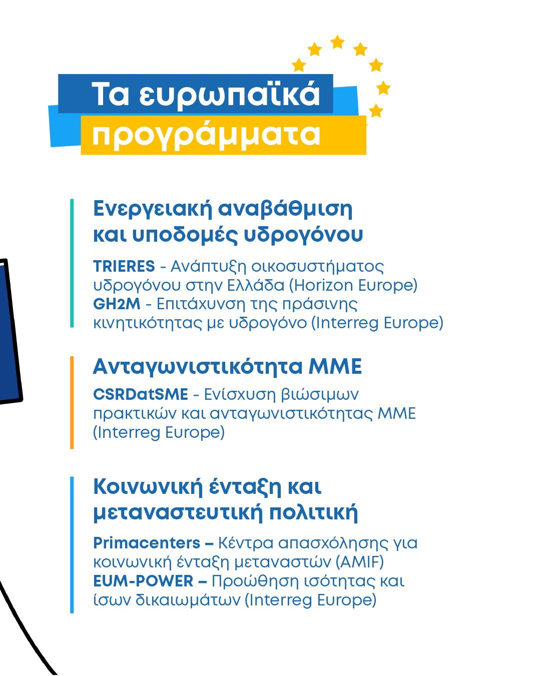 Τα 15 ευρωπαϊκά προγράμματα υπό τη διαχείριση του Αναπτυξιακού Οργανισμού