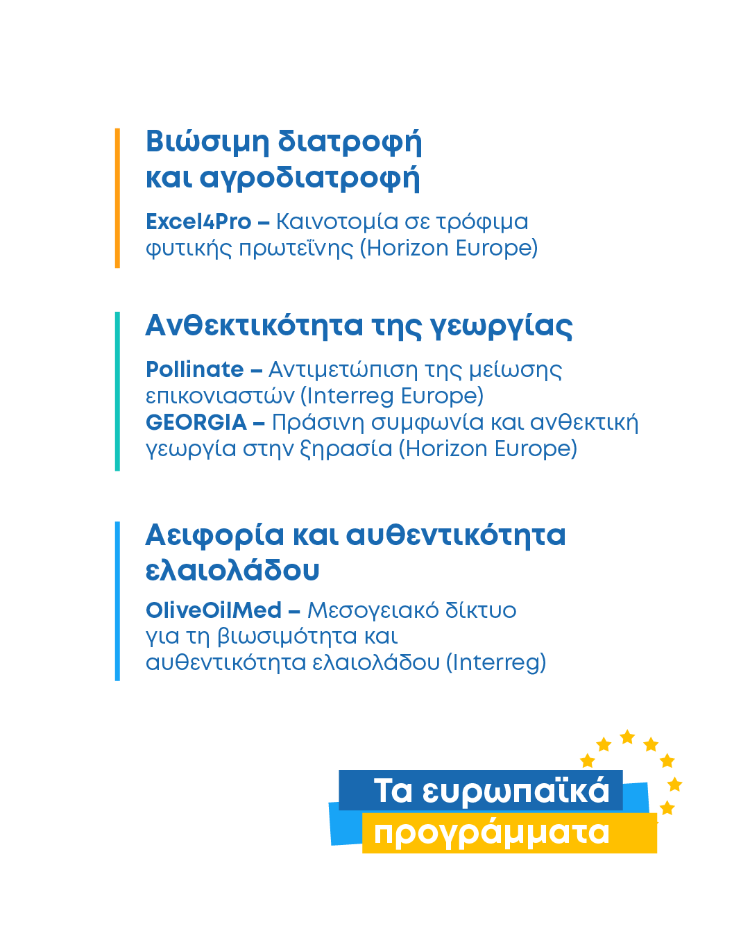 ●OliveOilMed – Μεσογειακό δίκτυο για τη βιωσιμότητα και αυθεντικότητα ελαιολάδου (Interreg)