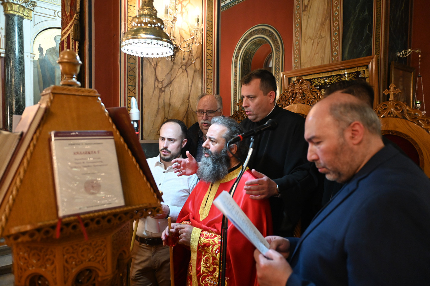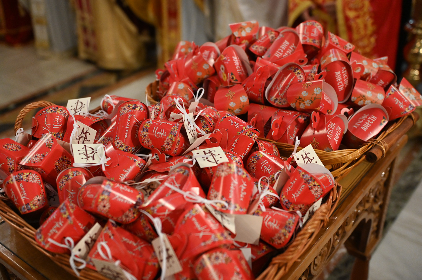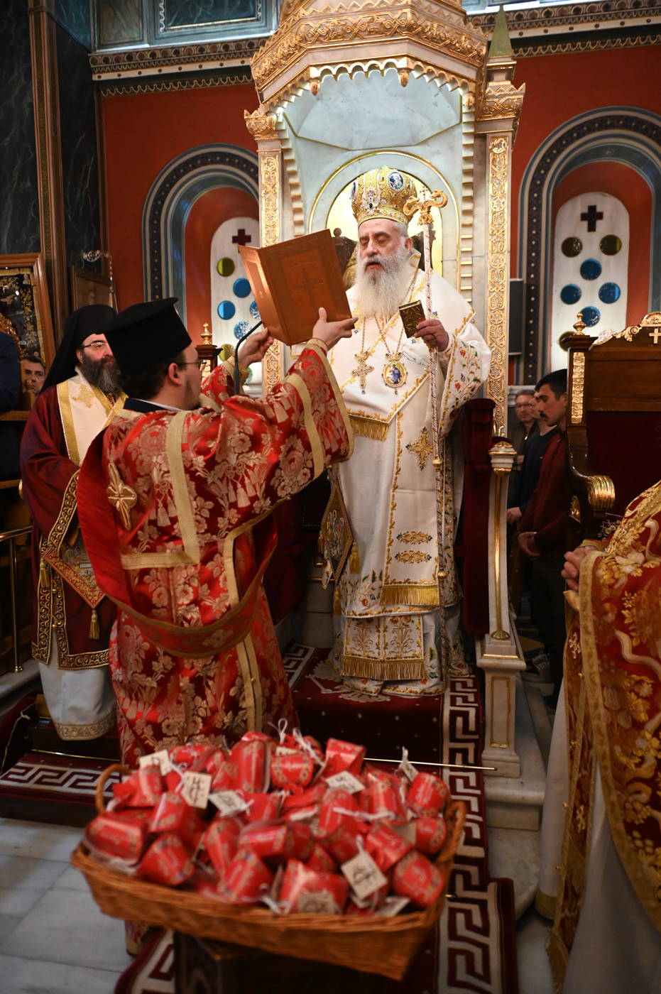 Με το πέρας του Εσπερινού ο Μητροπολίτης διένειμε σε Ιερείς, άρχοντες και πιστούς κόκκινα αυγά αναφωνώντας τον Αναστάσιμο χαιρετισμό “Χριστός Ανέστη”