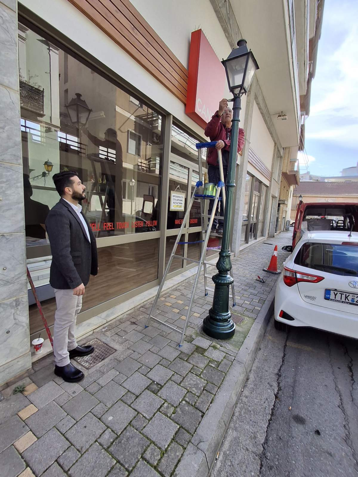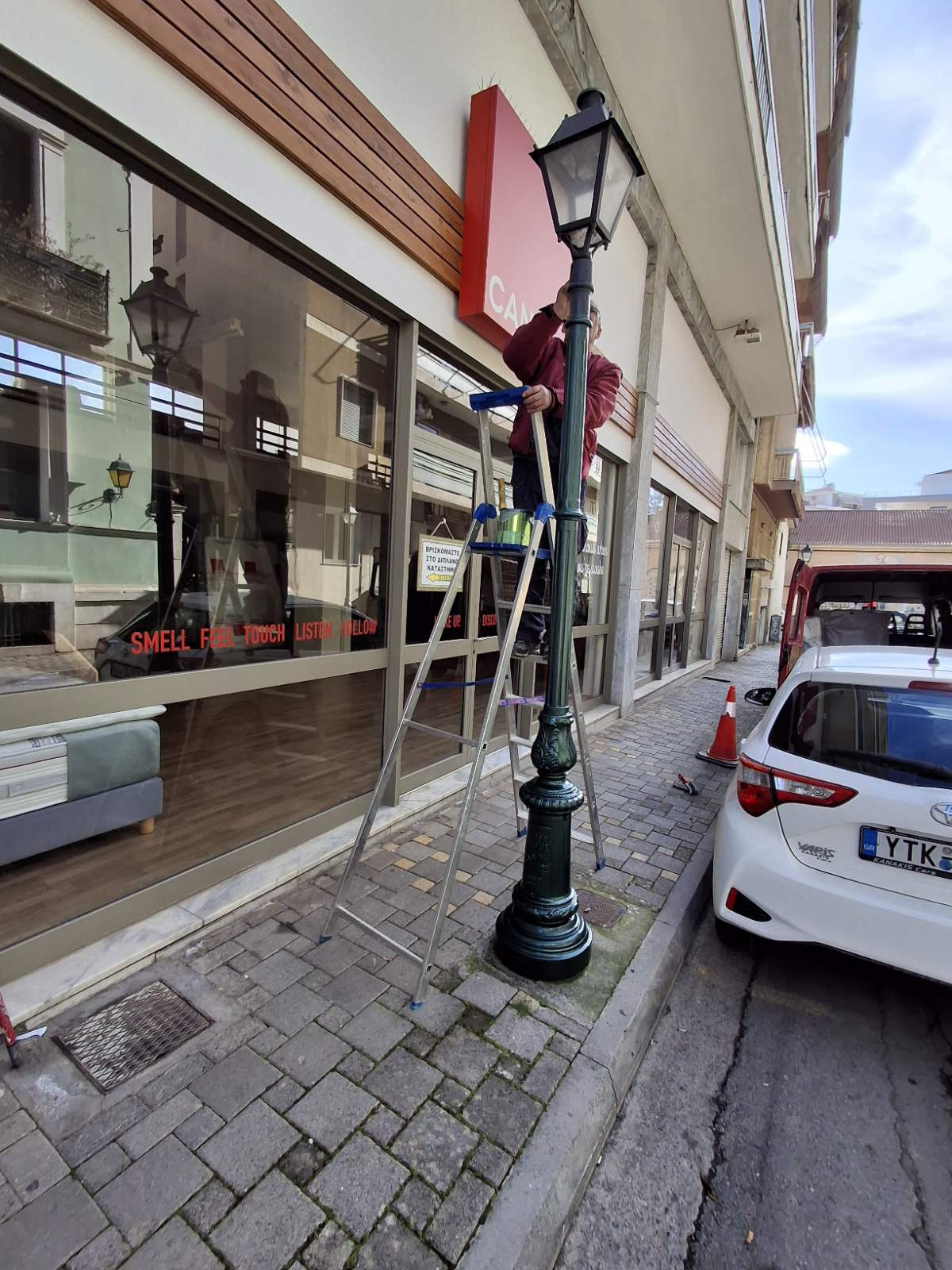 Εργασίες επισκευής και ελαιοχρωματισμού σε φωτιστικά σώματα επί των οδών Ηρώων Πολυτεχνείου, Αγίου Δημητρίου και Ταξιαρχών.