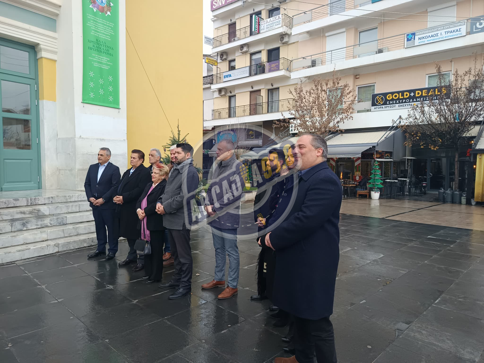 Παραδίπλα πολλά παιδιά με τα τριγωνάκια τους έψαλαν επίσης τα παραδοσιακά κάλαντα, ενώ ο κόσμος έσπευσε ν' ανταλλάξει ευχές με τον δήμαρχο Τρίπολης, Κώστα Τζιούμη, Αντιδημάρχους και Δημοτικούς Συμβούλους που βρέθηκαν επίσης στο σημείο.