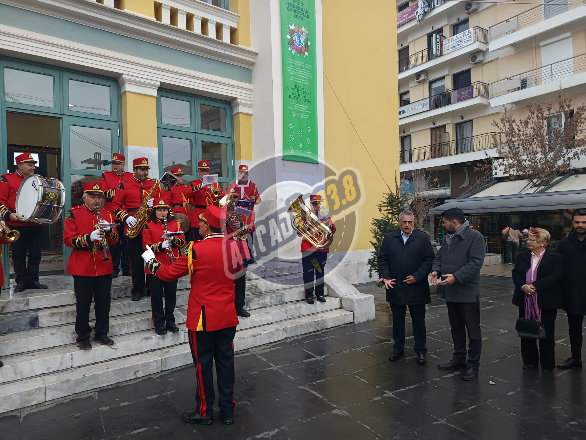 Φιλαρμονική του δήμου Τρίπολης και στρατιωτική μπάντα της διοίκησης κέντρων IV ΜΠ “Πελοπόννησος" έδιναν τον τόνο μπροστά από το Μαλλιαροπούλειο Θέατρο παιανίζοντας μελωδίες χριστουγεννιάτικες και πρωτοχρονιάτικες με αποτέλεσμα ν' αποτελέσουν πόλο έλξης για επισκέπτες, επισκέπτριες, δημότες και δημότισσες.