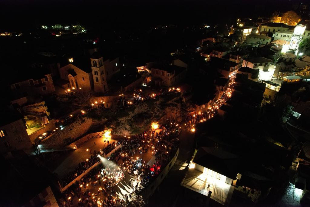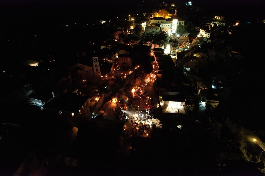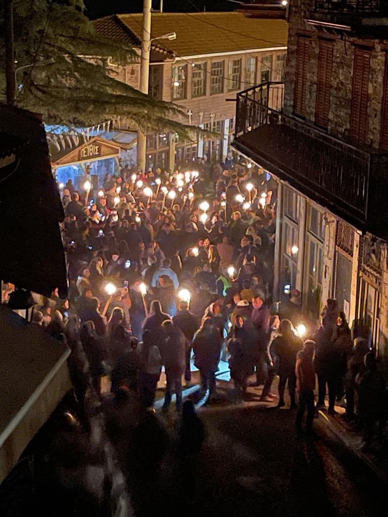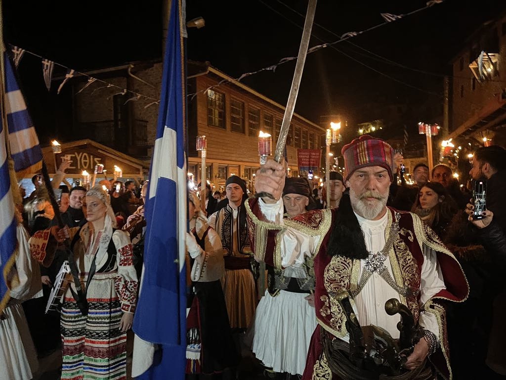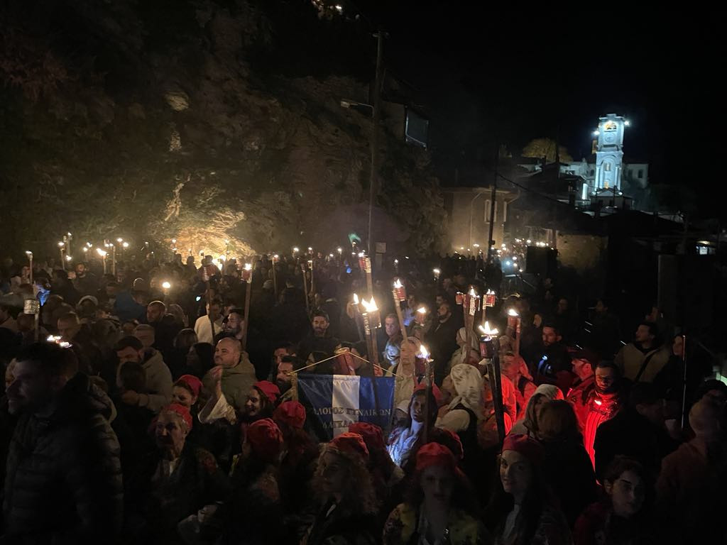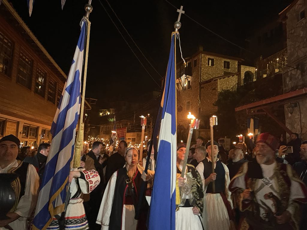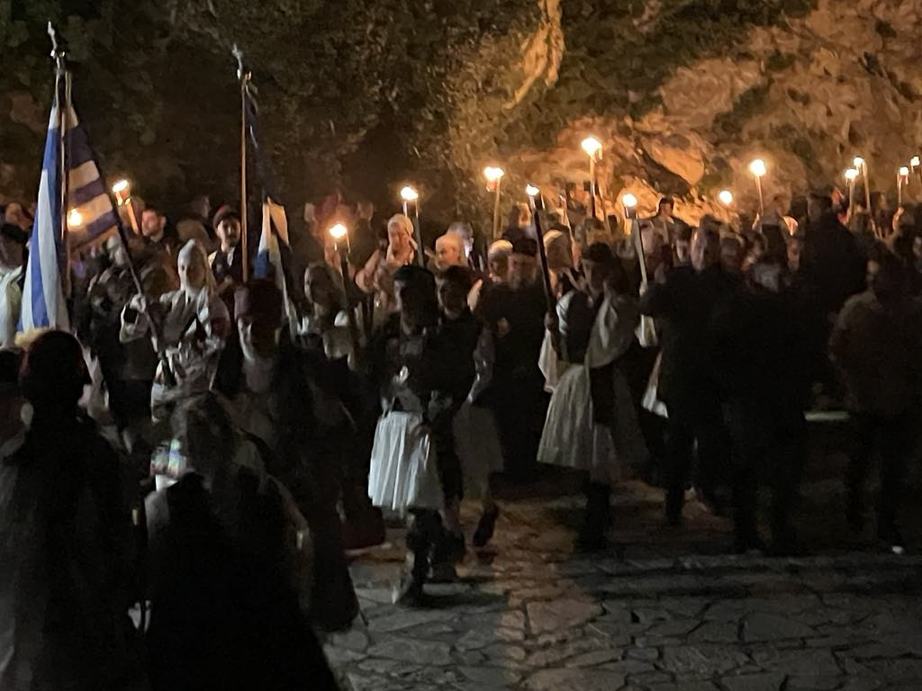 Μικροί και μεγάλοι, κρατώντας αυτοσχέδιες δάδες, ντυμένοι με παραδοσιακές φορεσιές, ξεχύθηκαν με τις δάδες και λυχνάρια στα χέρια, στα καλντερίμια της ιστορικής κωμόπολης, ακολουθώντας τα βήματα των προγόνων μας που, πριν 204 χρόνια, ύψωσαν τη φλόγα της ελευθερίας.