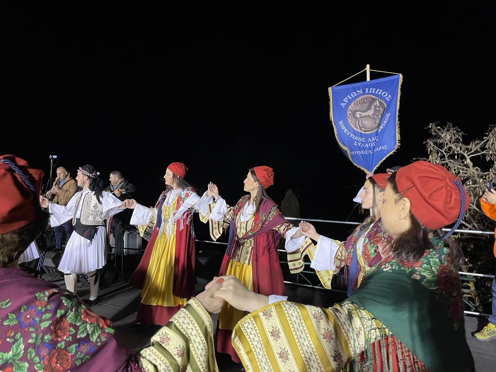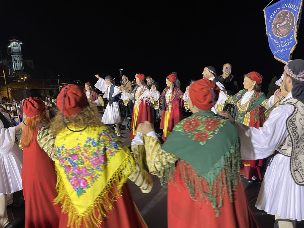 Η βραδιά κορυφώθηκε με ένα μεγάλο γλέντι, όπου τα χορευτικά συγκροτήματα των Συλλόγων, ‘Λαογραφικός – Χορευτικός Σύλλογος «Αρίων Ίππος» Γορτυνίας, ‘Σύλλογος Γυναικών Λαγκαδίων "Η Τρισεύγενη"’, «Πολιτιστικός και Εξωραϊστικός Σύλλογος Μεσσήνης», ‘Πολιτιστικός και Χορευτικός Σύλλογος ”Αρκάδων Δρώμενα”’ από την Τρίπολη και η ‘Χορευτική Ομάδα Δημητσάνας’ ανέβηκαν στη σκηνή και παρουσίασαν παραδοσιακούς χορούς, συνοδεία δημοτικής μουσικής και τραγουδιών της εποχής του Κολοκοτρώνη. Ο κόσμος χόρεψε, τραγούδησε και τίμησε τους ήρωες της Ελληνικής Επανάστασης, ζώντας μια μοναδική εμπειρία αναβίωσης της ιστορίας.