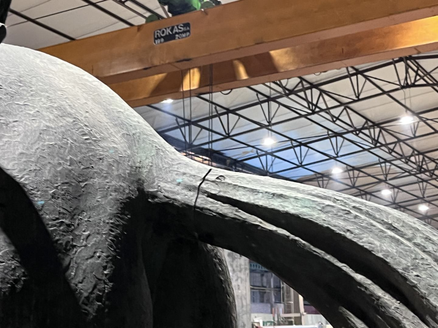 Τα ίδια τεχνικά ζητήματα που είχαν αντιμετωπιστεί κατά την αρχική μεταφορά του έργου, αντιμετωπίστηκαν και σήμερα, στο πλαίσιο των εργασιών διάσωσης, συντήρησης και αποκατάστασης. Για λόγους ασφαλείας και τεχνικής αρτιότητας κρίθηκε αναγκαία η αποσυναρμολόγηση του σπαθιού, ενώ σε επόμενο στάδιο θα αποσπαστεί και η ουρά.