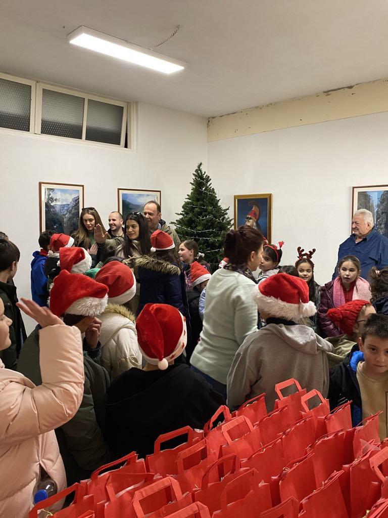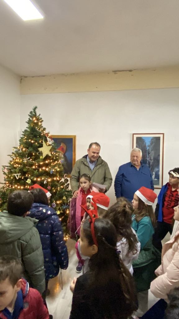 Η ατμόσφαιρα ήταν εορταστική καθώς τα παιδιά τραγούδησαν τα κάλαντα και μετέφεραν το πνεύμα και την αισιοδοξία των Χριστουγέννων. Αντάλλαξαν ευχές και ο Δήμος τους πρόσφερε δώρα και τα κέρασε γλυκά.
