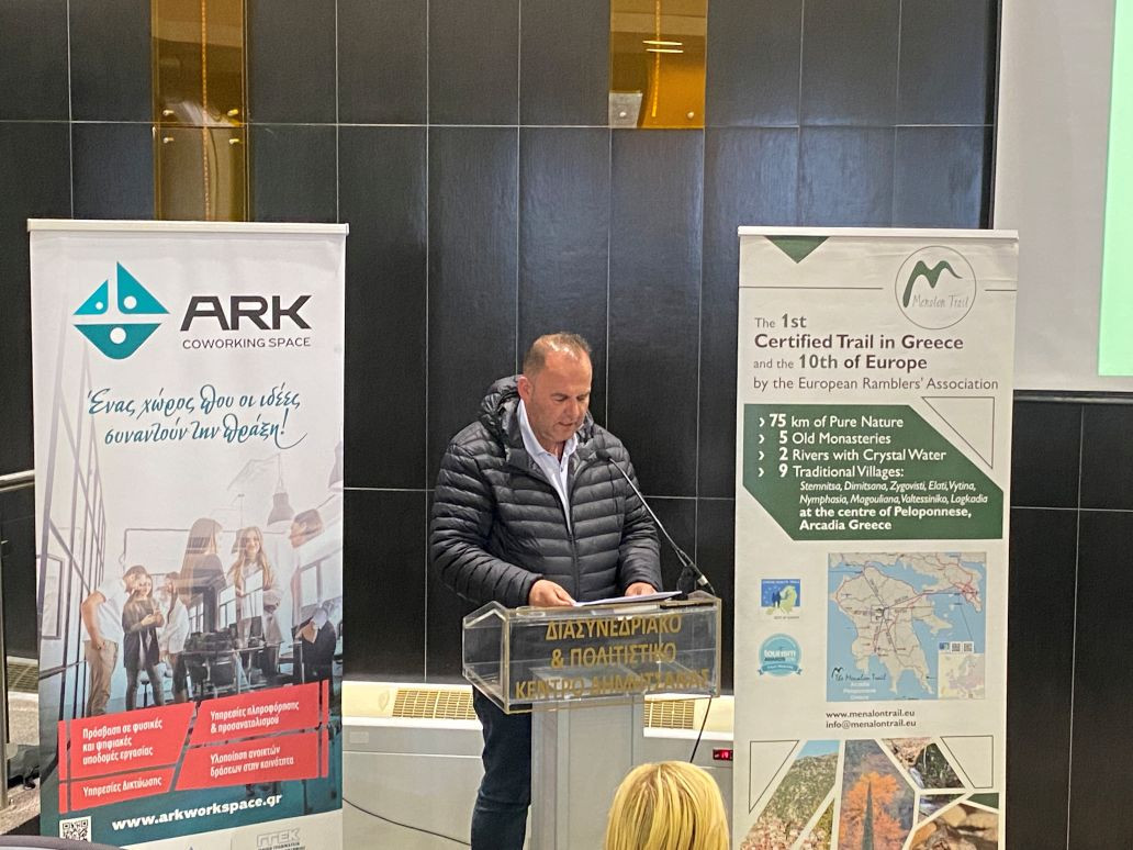 Ο κ. Ιωάννης Παπαδημητρίου συντονιστής της ένωσης εταιρειών – αναδόχων του Συνεργατικού Χώρου Εργασίας Ark Co-Working Space που λειτουργεί στην Τρίπολη αναφέρθηκε στη νέα επιχειρηματική δραστηριότητα που έχει ήδη αναπτυχθεί στο χώρο αυτό και κάλεσε τις επιχειρήσεις που δραστηριοποιούνται στη Γορτυνία να αξιοποιήσουν τα δωρεάν διαθέσιμα εργαλεία ανάπτυξης της καινοτόμας επιχειρηματικότητας που προσφέρονται μέσω του Προγράμματος Δίκαιης Αναπτυξιακής Μετάβασης. Πρόσθεσε τέλος ότι ο ΣΧΕ Ark Co-Working Spaceπροτίθεται να διαμορφώσει κατάλληλα υποστηρικτικά εργαλεία στα χαρακτηριστικά του επιχειρηματικού οικοσυστήματος των μονοπατιών της ευρύτερης περιοχής της Γορτυνίας.