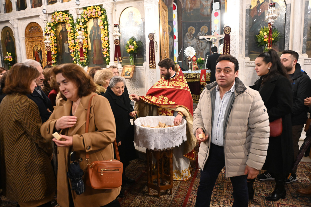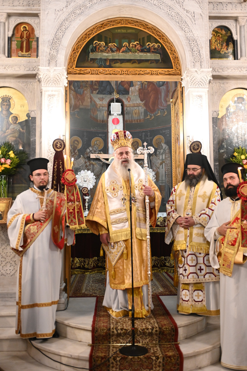 Επίσης, ευχαρίστησε τους παρισταμένους Ιερείς, τους άρχοντες, τον χορό των ιεροψαλτών, τα μέλη του εκκλησιαστικού συμβουλίου, της φιλοπτώχου διακονίας και τους διακονητές του ναού.