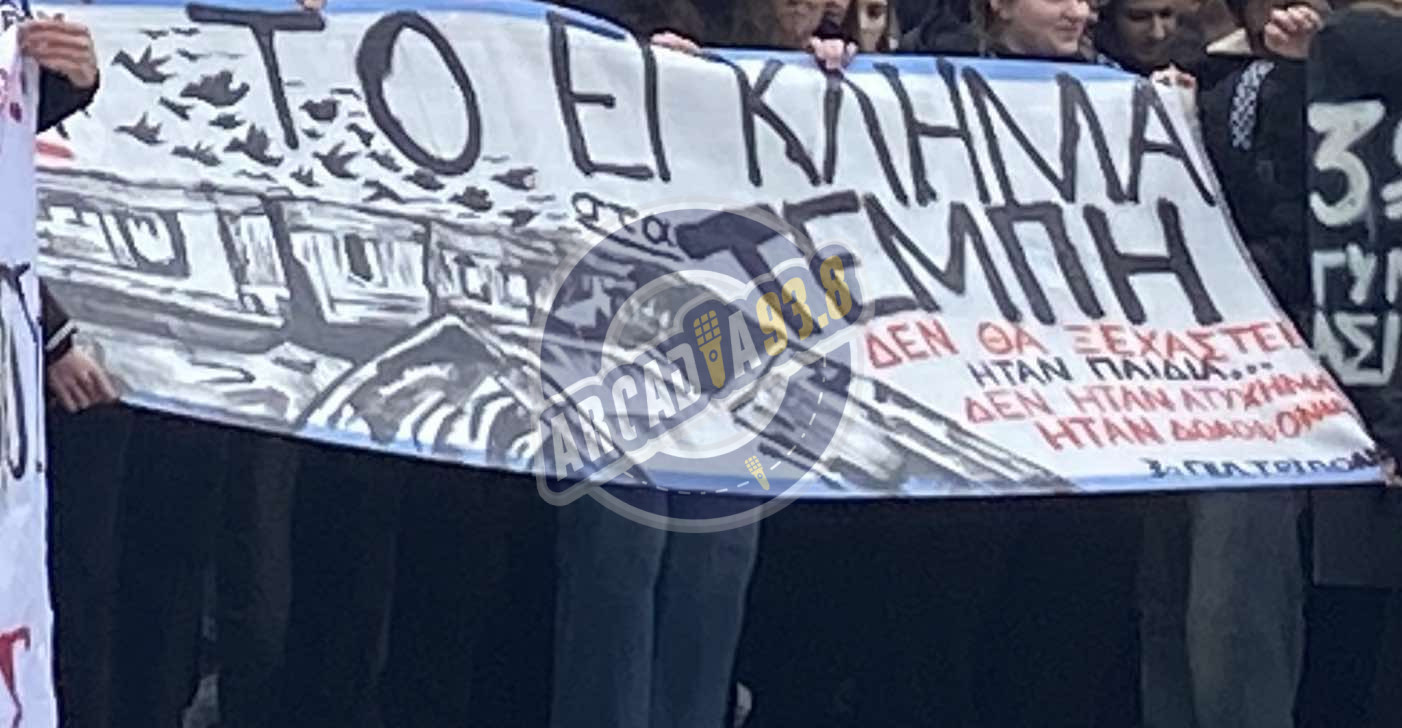 Μεγαλειώδης διαδήλωση στην Τρίπολη για τη "μαύρη" επέτειο των Τεμπών