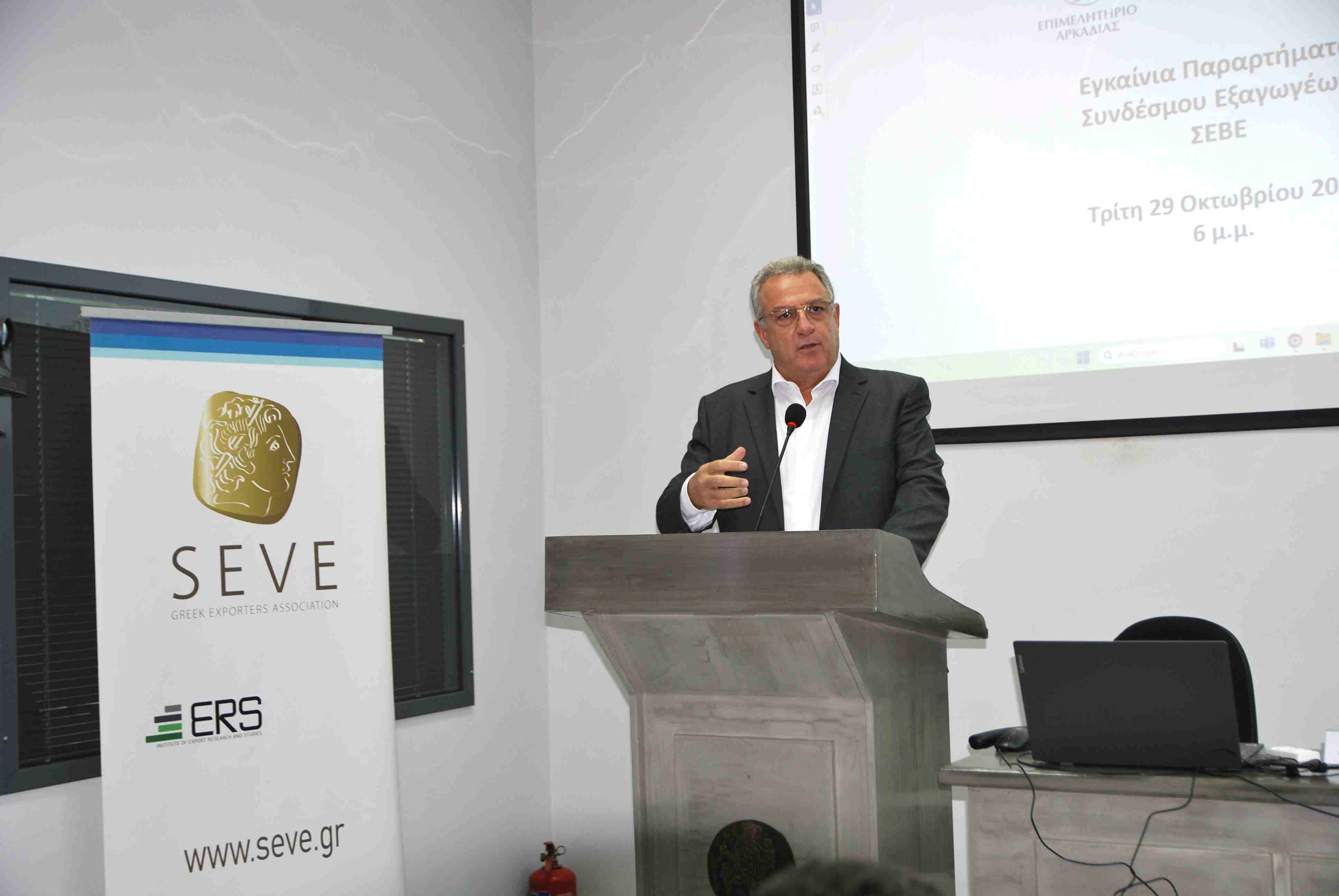 Τις εργασίες της εκδήλωσης εγκαινίων του Παραρτήματος, την Τρίτη 29 Οκτωβρίου, άνοιξε ο κ. Ανδρέας Σύριος, Αν. Πρόεδρος του Τμήματος Υπηρεσιών του Επιμελητηρίου Αρκαδίας και συντονιστής της εκδήλωσης, ο οποίος αφού ευχαρίστησε θερμά τους συμμετέχοντες ανέφερε ότι με τα εγκαίνια του νέου Παραρτήματος Εξαγωγέων υλοποιείται η δέσμευση του Επιμελητηρίου, μετά την υπογραφή μνημονίου συνεργασίας στην έκθεση Πελοπόννησος Expo, για τη στήριξη της επιχειρηματικότητας σε όλη την Πελοπόννησο