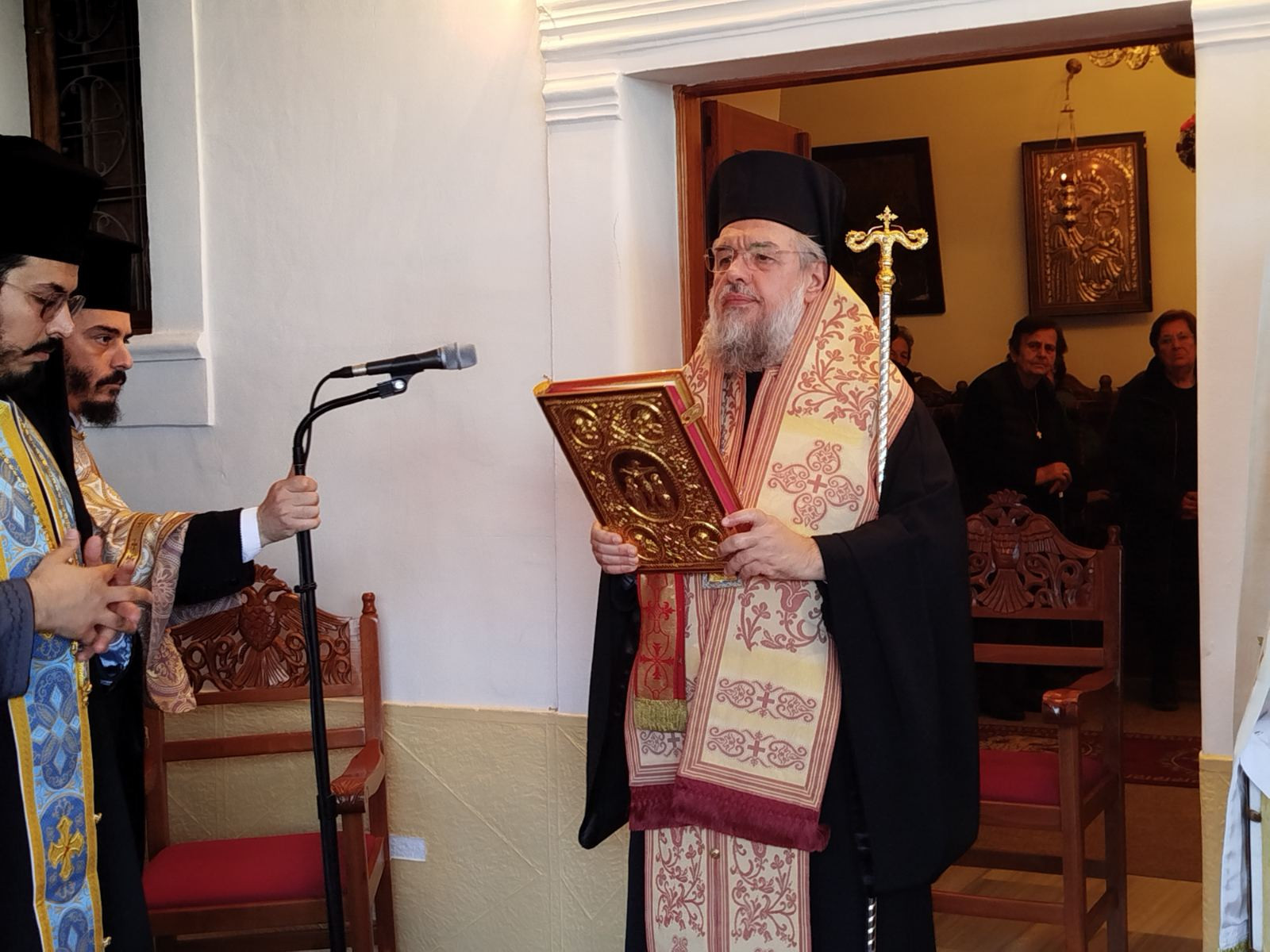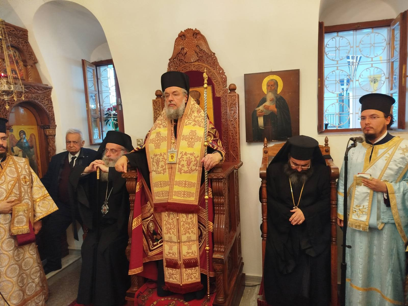 Αναφέρθηκε εν ολίγοις στο γεγονός των Εισοδίων της Θεοτόκου, όπως αυτό περιγράφεται στο Πρωτευαγγέλιο του Ιακώβου, λέγοντας πως η γιορτή αυτή μάς υπενθυμίζει όχι απλώς κάποιο γεγονός που συνέβη πριν από πολλά χρόνια, αλλά αποτελεί ένα γεγονός με βαθύτερο νόημα στη σημερινή εποχή. Το μήνυμα που εκπέμπουν οι Θεοπάτορες Ιωακείμ και Άννα είναι να τους