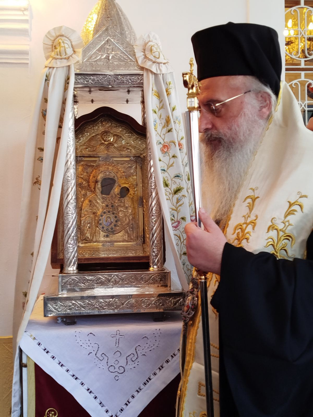ευγενική δυνατότητα να συνεορτάσει με τους κατοίκους του Λεωνιδίου και να προσκυνήσει τη θαυματουργή εικόνα της Παναγίας Ελώνης, τονίζοντας ότι η τιμή της Παναγίας μάς ενώνει ως Εκκλησία, μάς στηρίζει στους πνευματικούς μας αγώνες και δυναμώνει την αδελφική μας ενότητα.