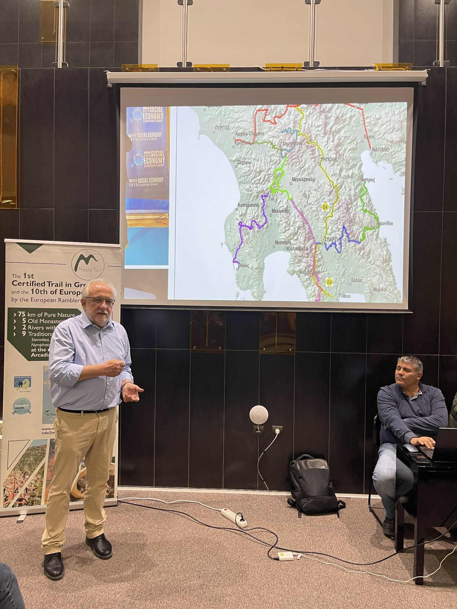 Ο Πρόεδρος της Ένωσης Φορέων Κ.Αλ.Ο. «ΠΕΛΟΠΑΣ» και Πρόεδρος της Μαίναλον Τρέηλ Ιωάννης Λαγός παρουσίασε τις διαδρομές των 11 νέων μονοπατιών του «Peloponnese Trails» και επισήμανε ότι η κοινωνική οικονομία μπορεί να αποτελέσει μοχλό περιφερειακής ανάπτυξης. Ως επόμενο στόχο ανέφερε την επέκταση του δικτύου μονοπατιών και την ένταξη του σε ευρύτερες στρατηγικές για την απασχόληση, την εκπαίδευση και την ανθεκτικότητα των τοπικών κοινωνιών.