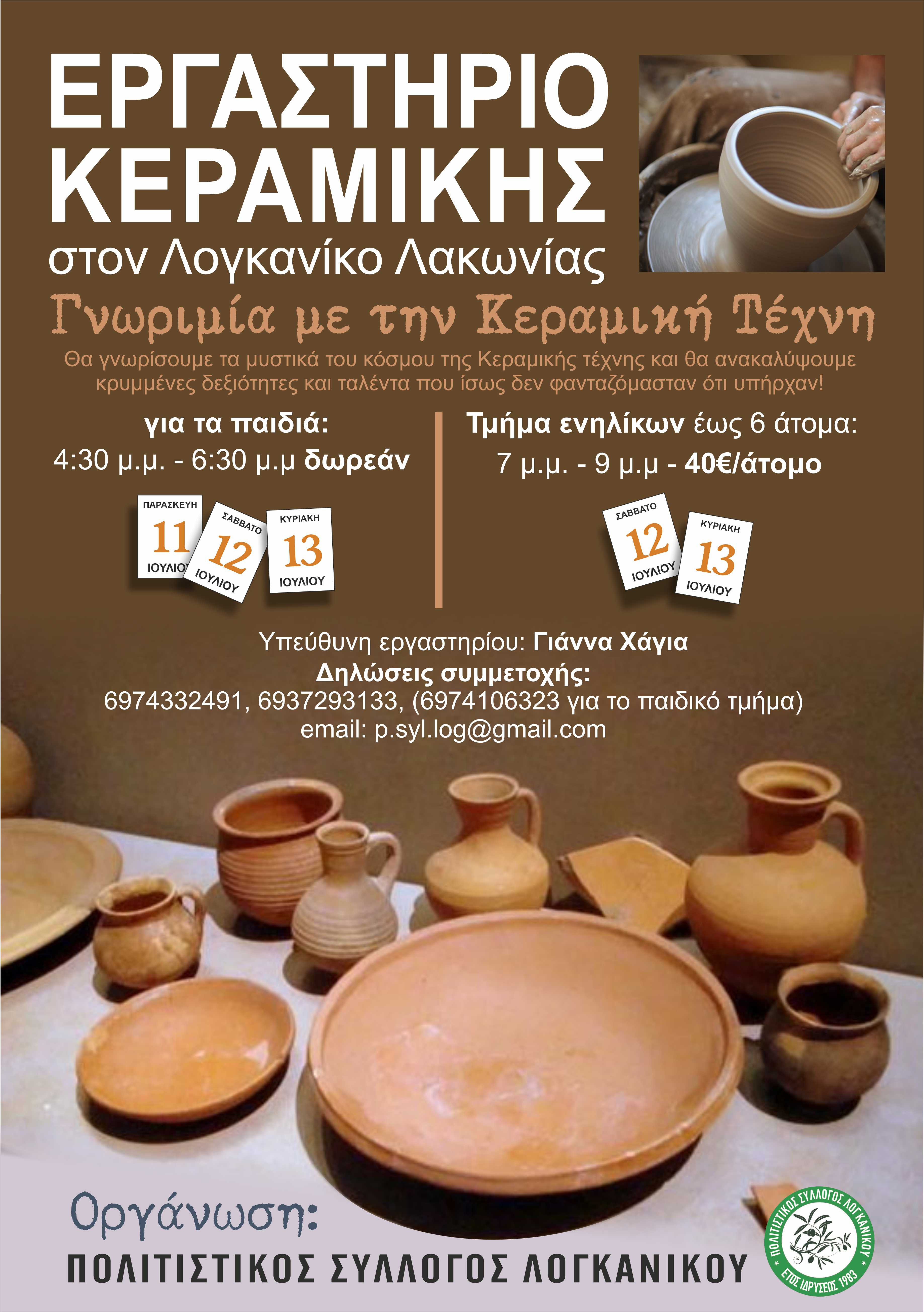 Ο Πολιτιστικός Σύλλογος Λογκανίκου διοργανώνει εργαστήριο Κεραμικής