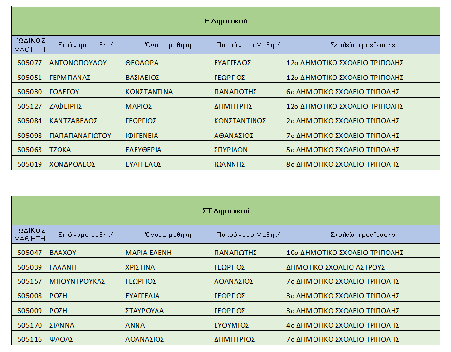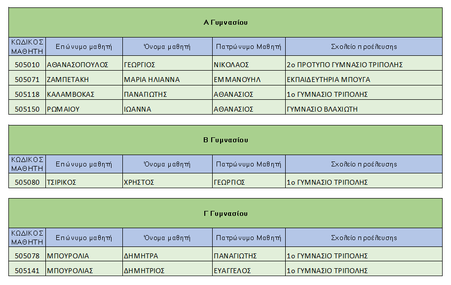 Οι νικητές και οι νικήτριες από την Αρκαδία στον Μαθηματικό Διαγωνισμό "Πυθαγόρας