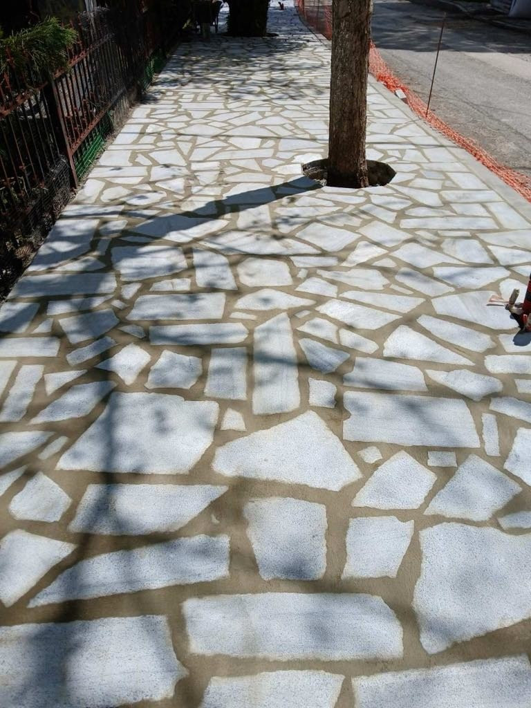 -Τη δημιουργία υπόβασης από σκυρόδεμα, την τοποθέτηση μαρμάρινων κρασπέδων και την αποξήλωση των παλιών πλακών.