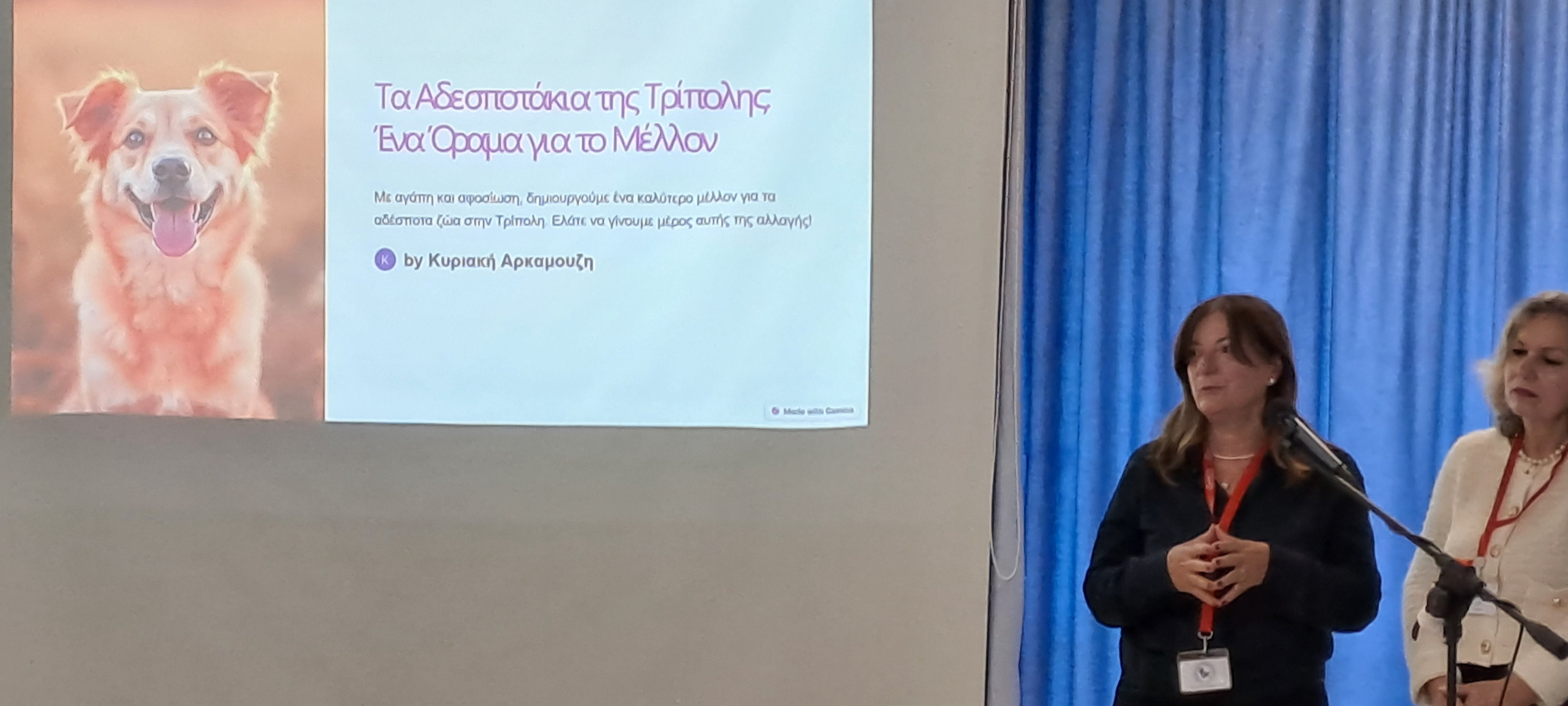 Σημαντική ήταν η παρουσία και οι ομιλίες από την κτηνίατρο του καταφυγίου αδέσποτων του Δήμου Τρίπολης, κα Θεοδωρακοπούλου Αναστασία, την υπεύθυνη των αδέσποτων ζώων του Δήμου Τρίπολης, κα Ψιμάρνη Παναγιώτα, καθώς και τις εκπροσώπους του φιλοζωικού σωματείου "Αδεσποτάκια Τρίπολης" κα Σπυριδούλα Τρυφωνοπούλου (πρόεδρο), κα Καραλέκα Βιβή (αντιπρόεδρο), κα Κροκιδά Φραντζέσκα ( γραμματέα) καθώς και τις εθελόντριες κα Μαργιώλα και κα Παλαβίδου. Οι ομιλίες τους προσέφεραν πολύτιμες πληροφορίες και ενίσχυσαν τη σημασία της υπευθυνότητας και της φροντίδας των αδέσποτων ζώων.