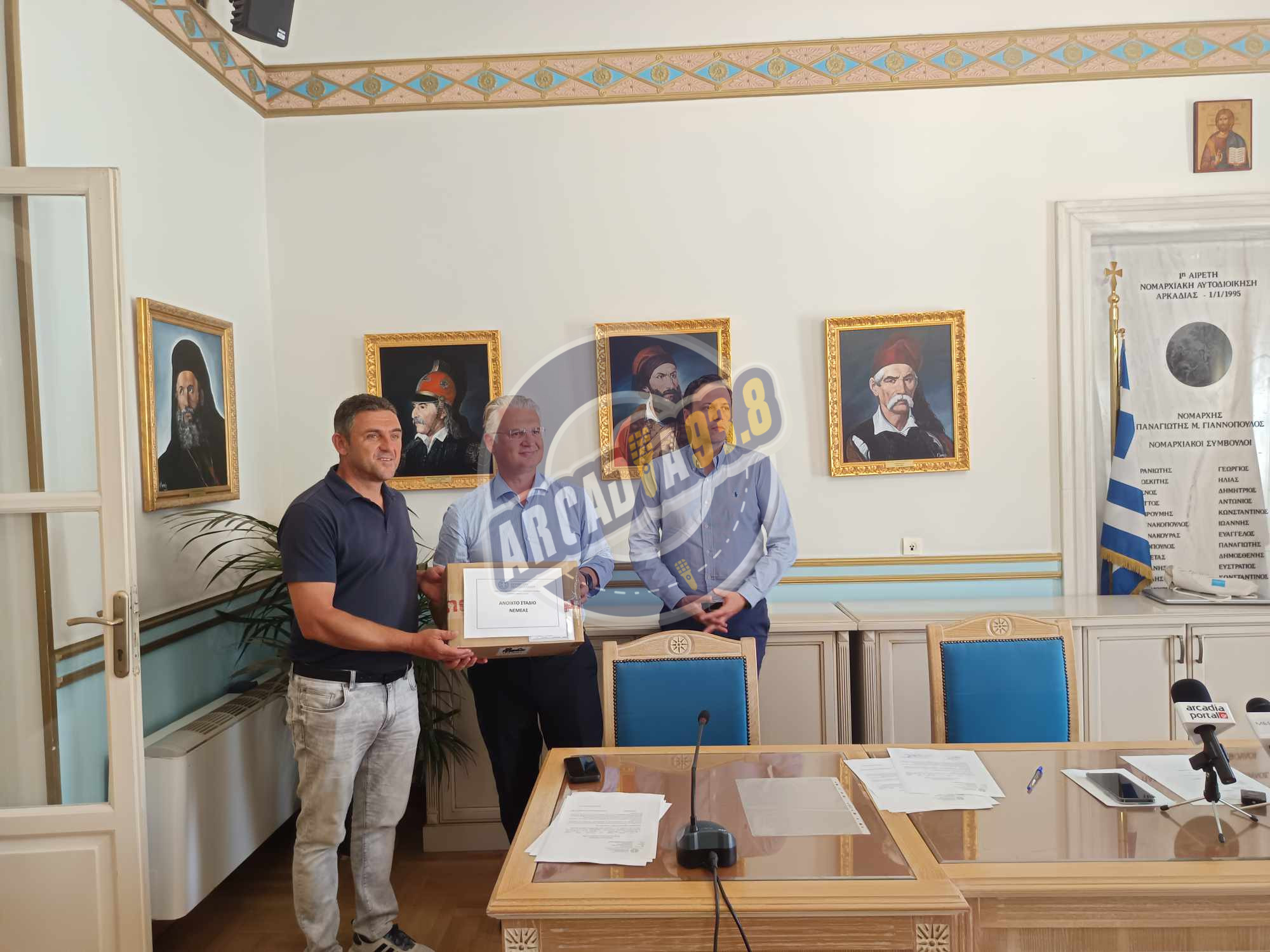 Ηλεκτρονικοί απινιδωτες παραδόθηκαν σήμερα σε αθλητικά σωματεία και φορείς των Περιφερειακών Ενοτήτων της Πελοποννήσου, παρουσία του Περιφερειάρχη, κ. Πτωχού, και του αρμόδιου Αντιπεριφερειάρχη, κ. Μέλλου.
