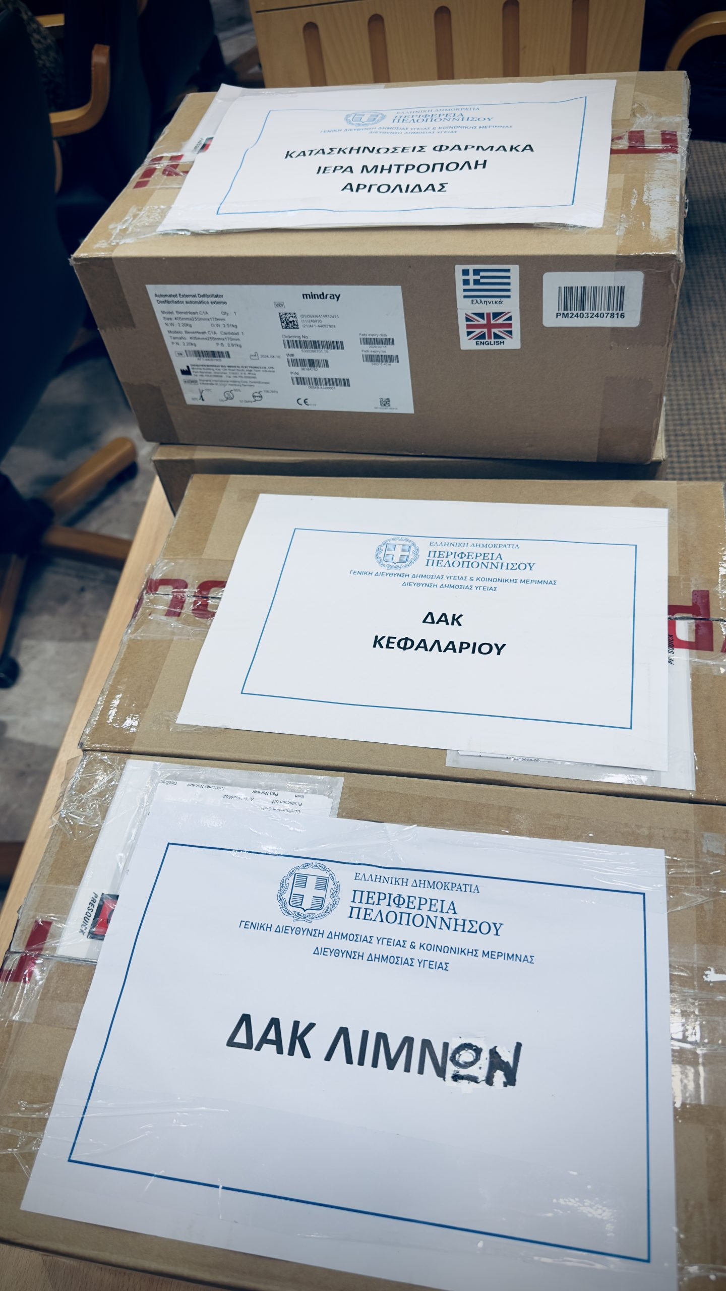 Παράδοση απινιδωτών στην Π.Ε. Αργολίδας