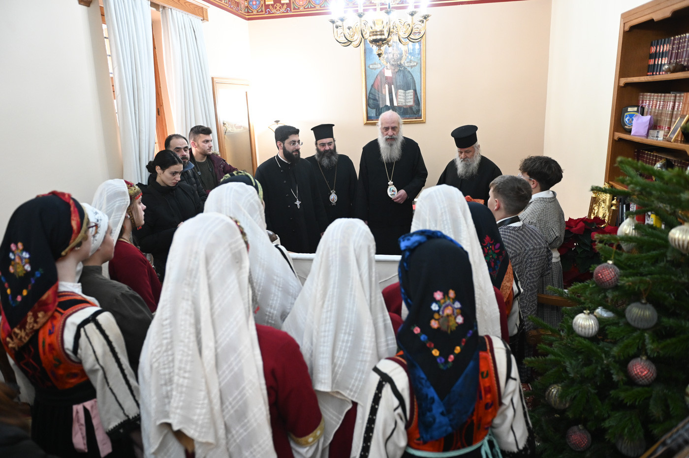 Χριστουγεννιάτικα κάλαντα και παραδοσιακά τραγούδια έψαλλαν σήμερα, παραμονή των Χριστουγέννων στον Σεβασμιώτατο Μητροπολίτη Μαντινείας και Κυνουρίας κ. Επιφάνιο φορείς της πόλεως, αλλά και ομάδες νέων.