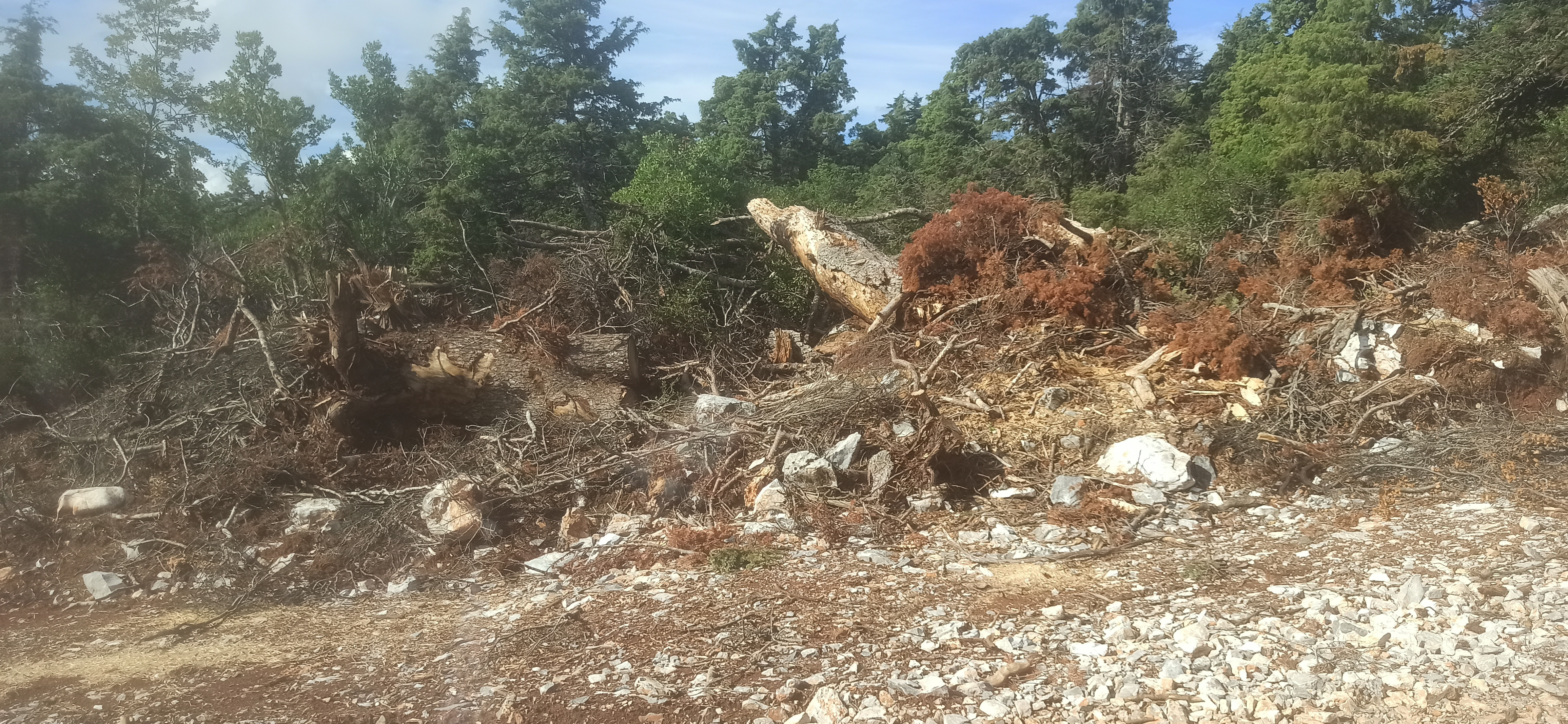 Οι φωτογραφίες είναι εύγλωτες, τεράστιοι εκβραχισμοί και εκσκαφές, δρόμοι λεωφόροι, πέταλα πλατείες 30 και 40 μέτρων, κομμένοι κορμοί δέντρων και είμαστε ακόμα στην αρχή. Σκεφθείτε τι θα γίνει στο πυκνό δάσος ή στις βουνοκορυφές που θα στηθούν οι ανεμογεννήτριες. Δεν φτάνει που το ελατόδασος στην περιοχή (που σημειωτέων είναι το νοτιότερο ελατόδασος της Ευρώπης) είναι εγκαταλελειμμένο και απροστάτευτο από το κράτος, έρχονται και τα αρπαχτικά των ΑΠΕ να το αποτελειώσουν.