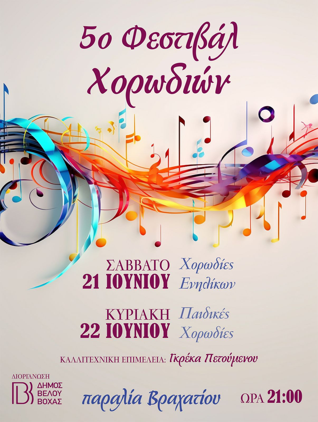 Τη μέρα της μουσικής τιμά η Γυναικεία – νεανική χορωδία LA VITA, με τη Μαέστρο τους, Ελένη Αλεξοπούλου, η οποία θα συμμετέχει το Σάββατο, 21 Ιουνίου, στο «5Ο Φεστιβάλ Χορωδιών» στο Βραχάτι, προσδίδοντας μια ακόμα όμορφη νότα στον εορτασμό της μέρας αυτής. Το Φεστιβάλ διοργανώνει η Δημοτική Χορωδία Βέλου Βόχας. Θα τραγουδήσουν, επίσης, η Δημοτική Χορωδία Επιδαύρου, η Μικτή Χορωδία «Απόλλων» Πατρών και η Μικτή Χορωδία του Δήμου Παλαιού Φαλήρου «Ανδρέας Λαζάρου», δίπλα στη θάλασσα.