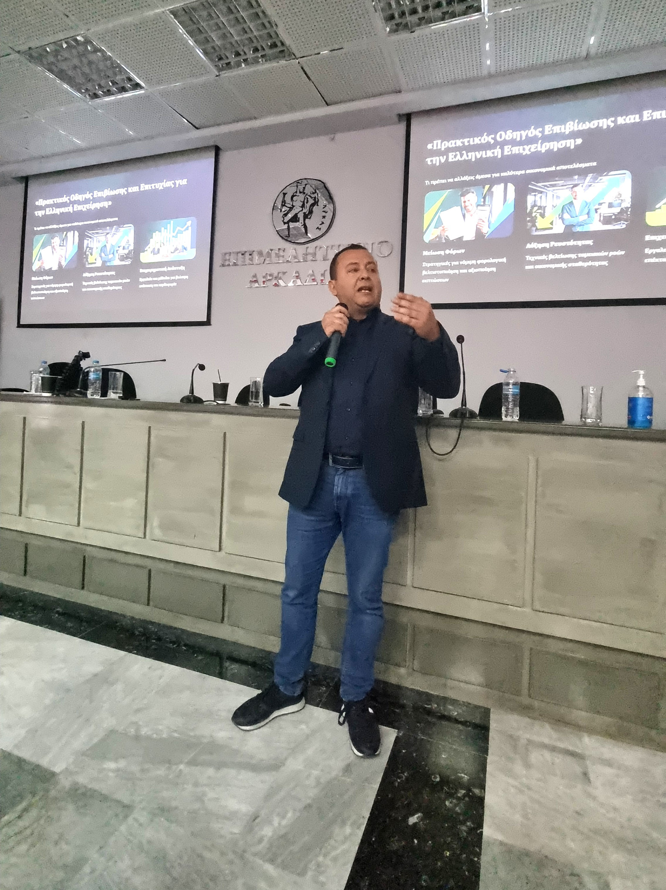 Το σεμινάριο πραγματοποιήθηκε σε συνδιοργάνωση με το Επιμελητήριο Αρκαδίας, με την παρουσία διακεκριμένων εισηγητών, οι οποίοι δεν περιορίστηκαν στη θεωρία, αλλά πρόσφεραν πρακτικά εργαλεία, βιωματικές προσεγγίσεις και ρεαλιστικές στρατηγικές για άμεση εφαρμογή στις επιχειρήσεις των συμμετεχόντων.